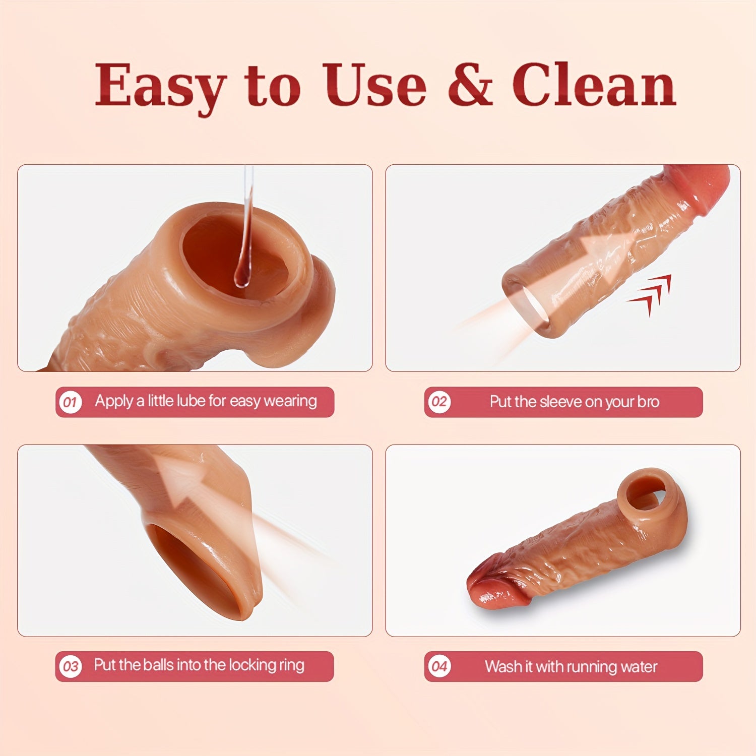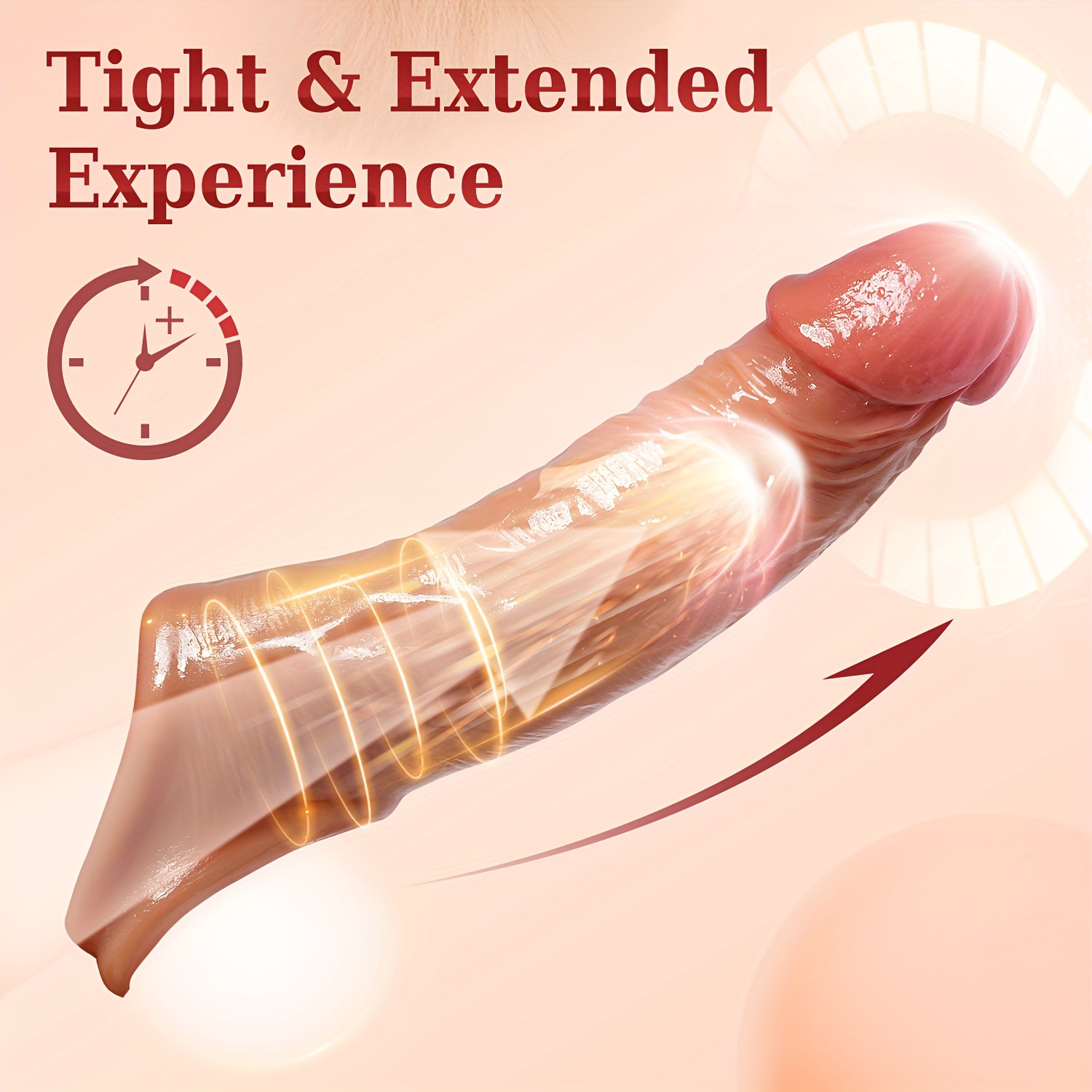 1pc 6.89inch Penis Sleeve, Waterproof, Skin-friendly Silicone, Reusable Dildo Penis Sleeve Extender, Realistic Textured Cock Extender Body-Safe Stretchy Soft Material Cock Enlarger Applicative For Men And Couple