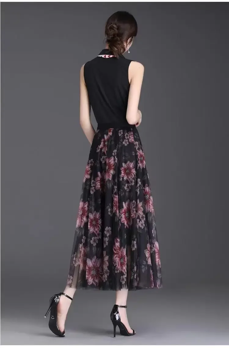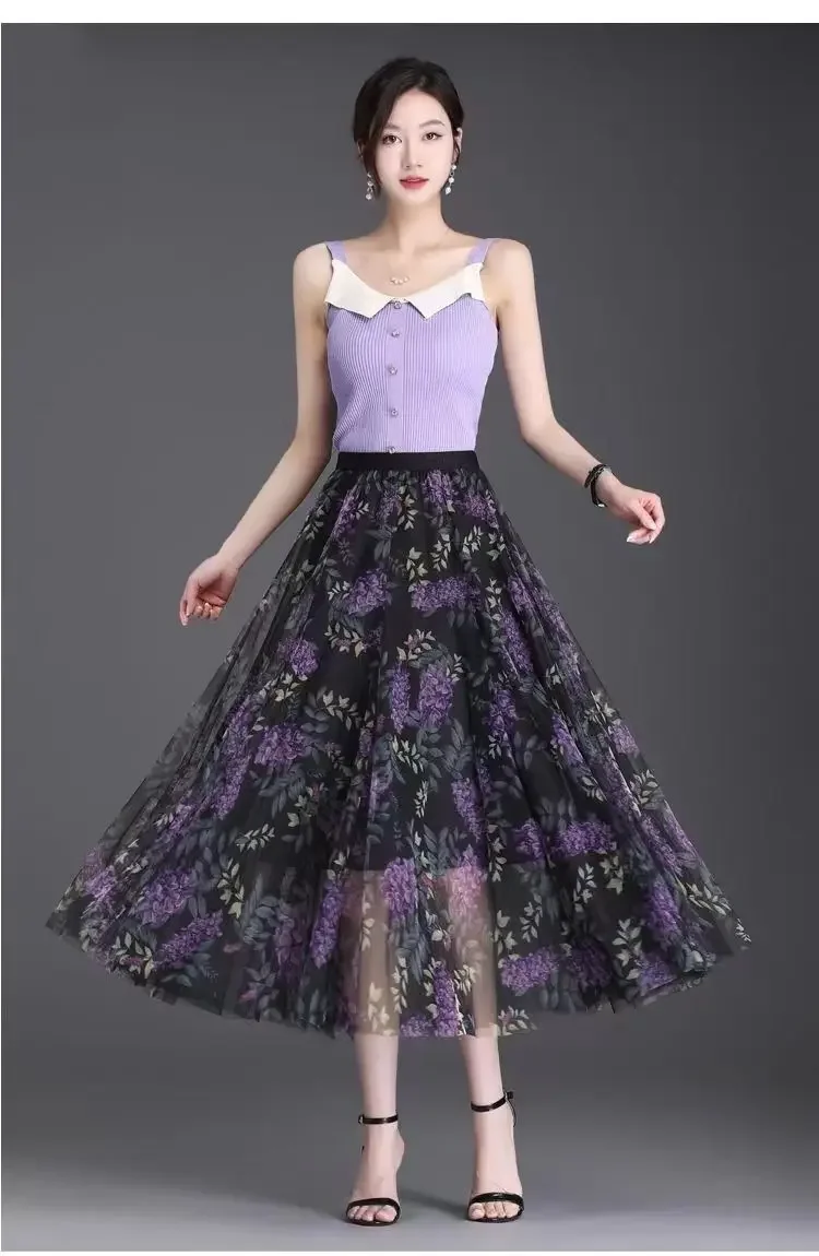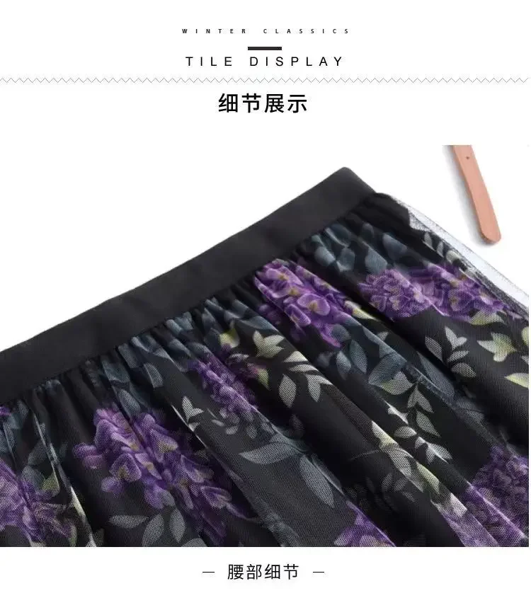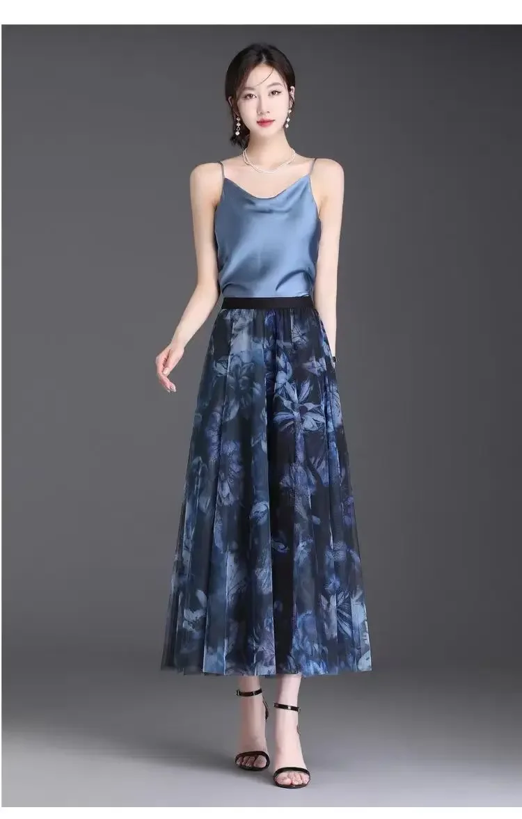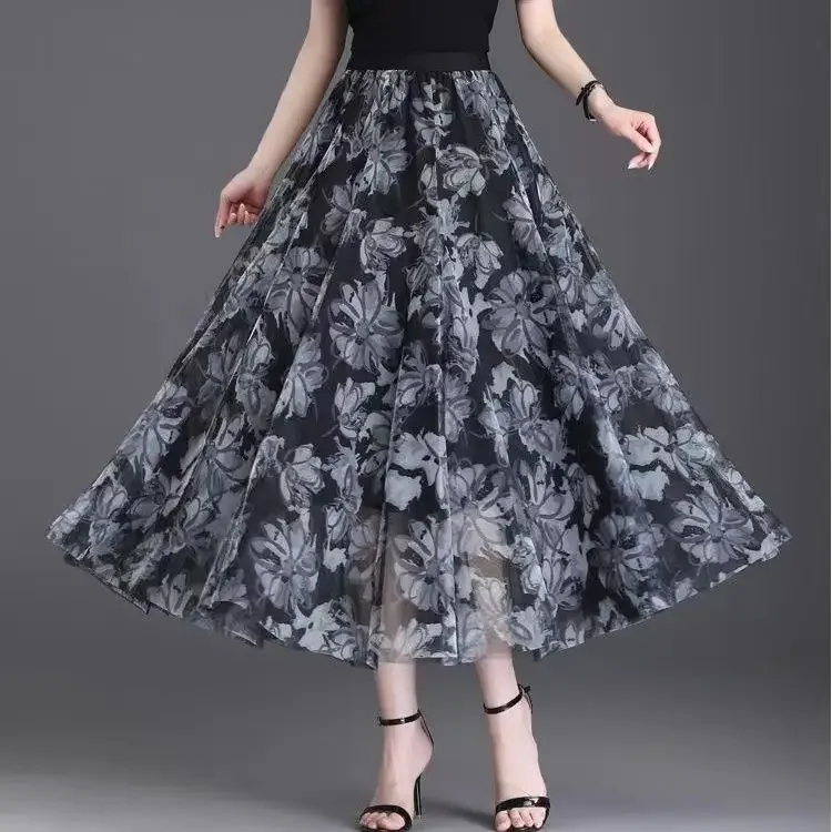 2025 High-waisted Slim Printed A-line Large Hem Skirt with Long Skirt Temperament, Fashionable and High-end