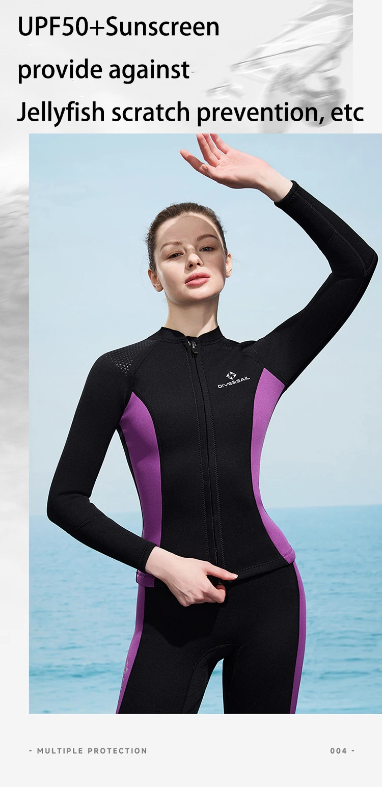 【Sun Protection and prevent injuries】Long sleeve wetsuit top is UV protection can help prevent sunburn and injuries and a defense against cold temperatures, jellyfish, sea lice...ect. tidy line stitching avoid the painful friction to skin, the tighthen cuff design to enhance the waterproof effective.