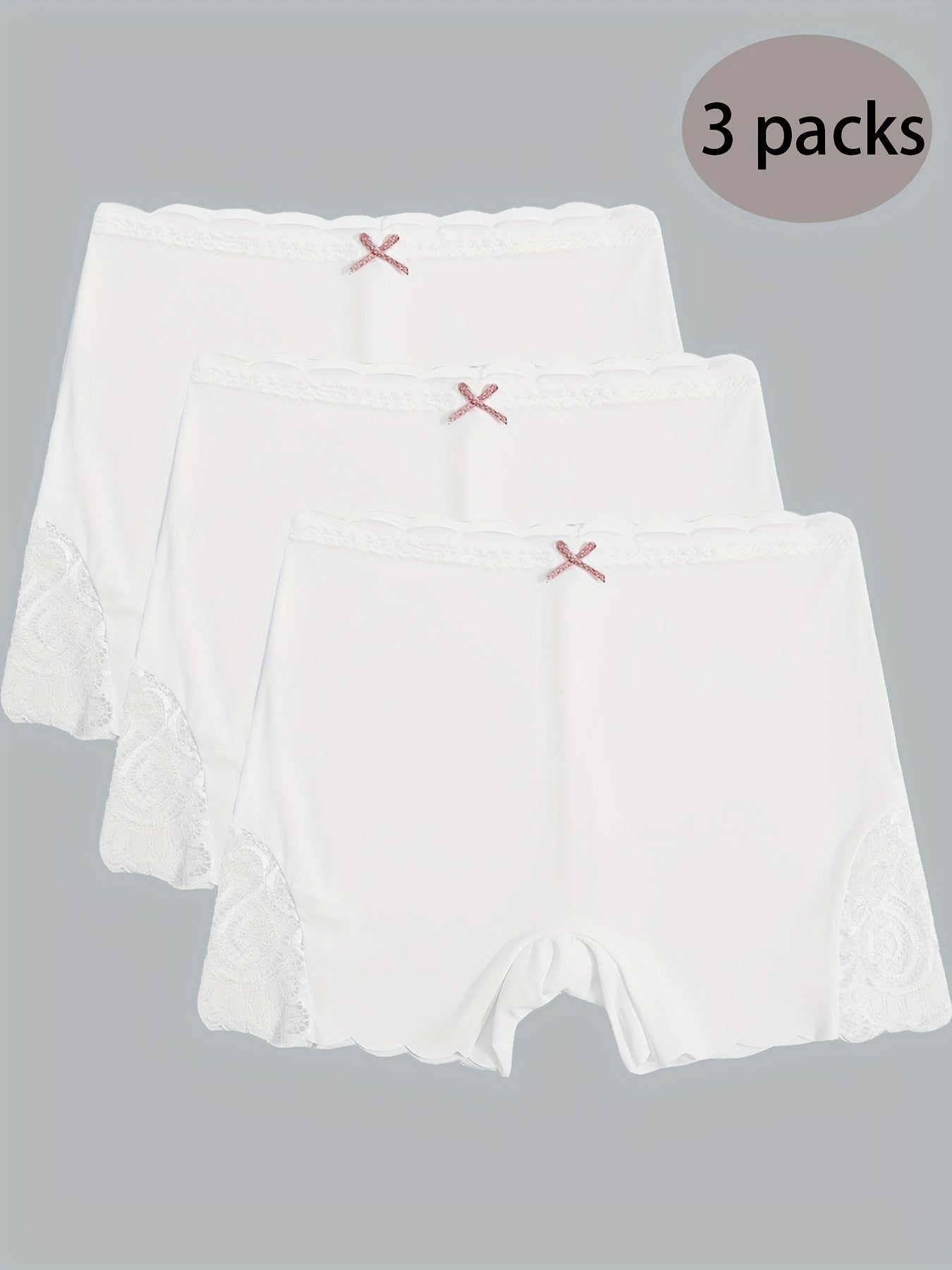 3pcs Contrast Lace Boyshort Panties, Seamless Scallop Trim Bow Tie Panties, Women's Lingerie & Underwear