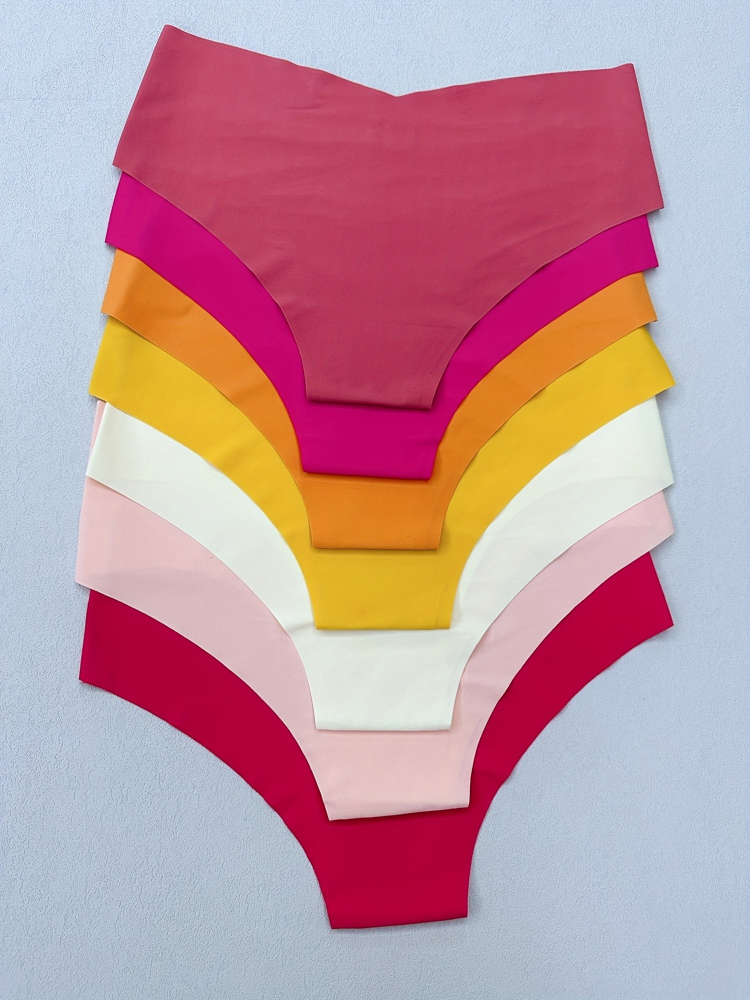 7pcs Seamless Solid Briefs, Comfy & Breathable Stretchy Intimates Panties, Women's Lingerie & Underwear