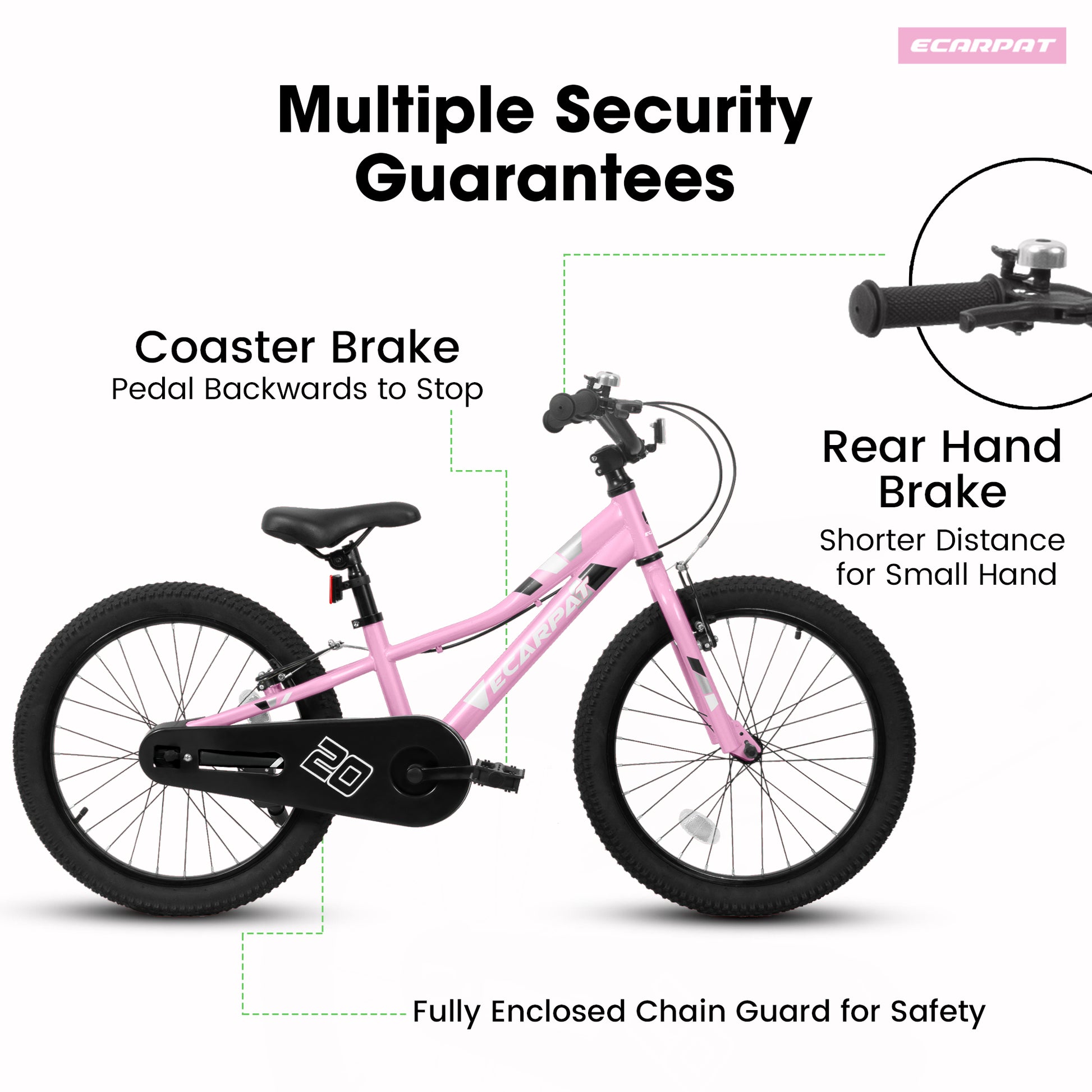 - 【Safety Protection】Coaster foot brake and V-brake make it easy to learn. It is suitable for small kids who don’t have enough power to control brake by hand. Enclosed chain guard to protect kids’ hands, feet, and clothing.