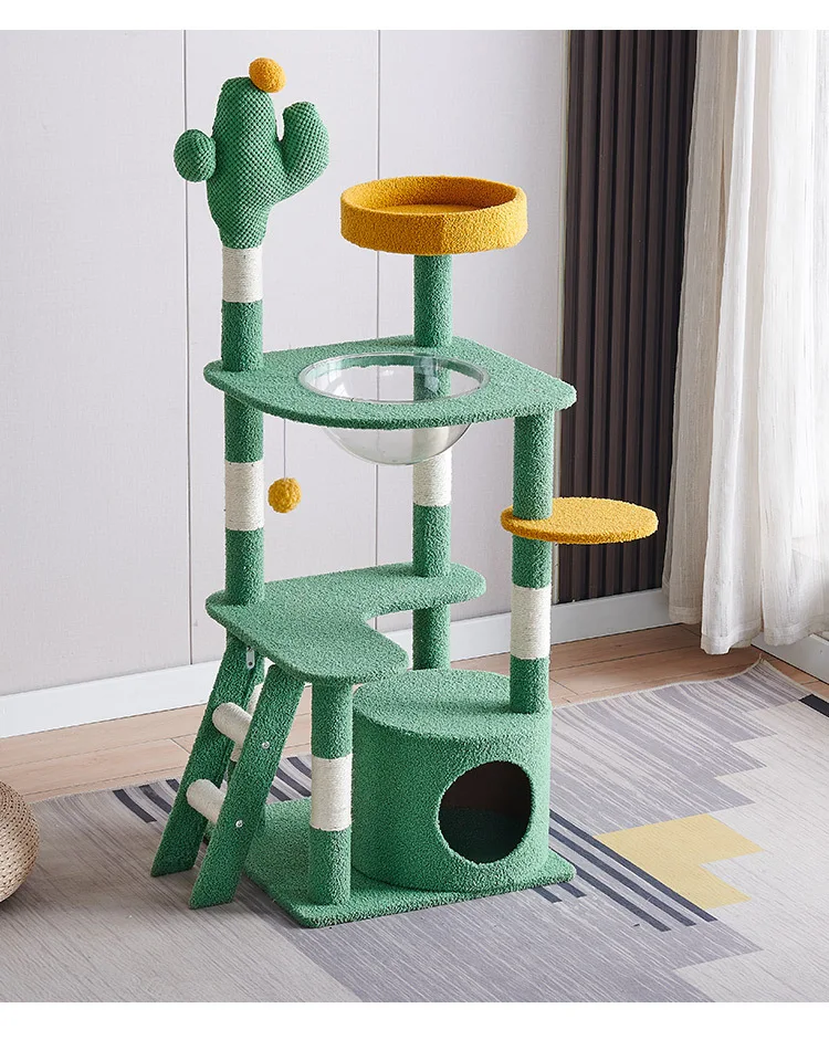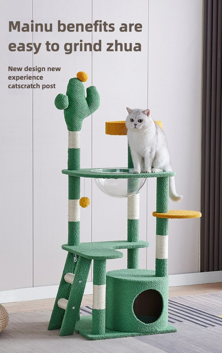 Cactus Cat Tree,Large Multi-Level Cats Climbing Tower, Scratching Post, Cozy Pet Bed