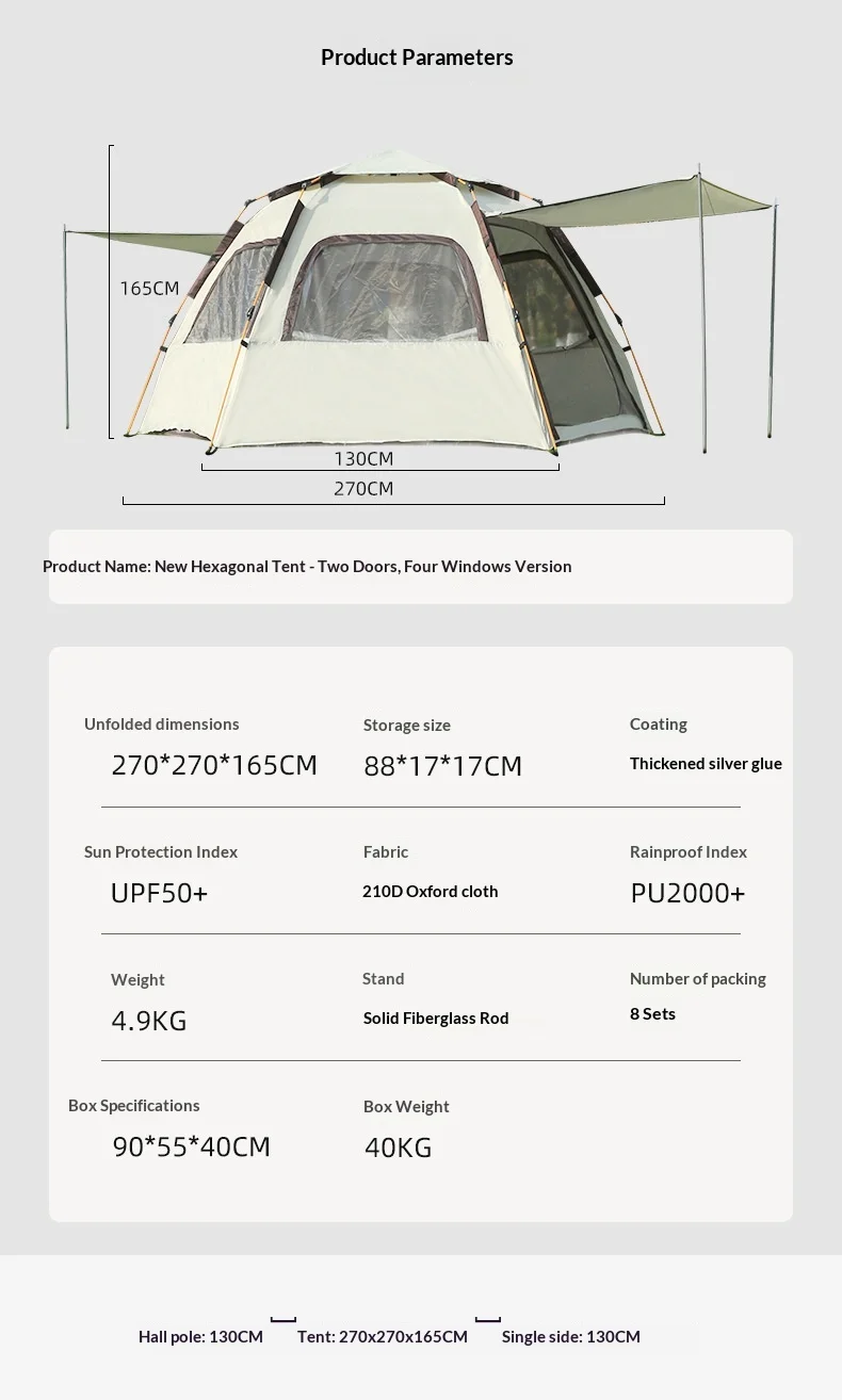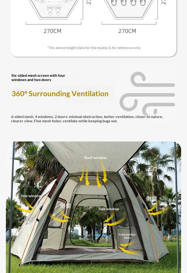 Camping Tents Automatic Pop Up Beach Camping Tent Portable Foldable Waterproof UV Sun Shade Instant Hexagonal Shelter Outdoor
