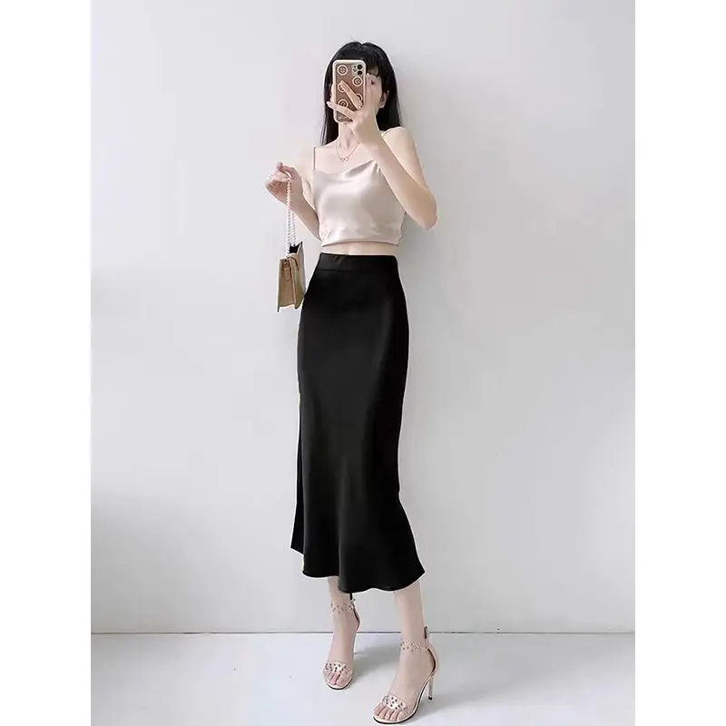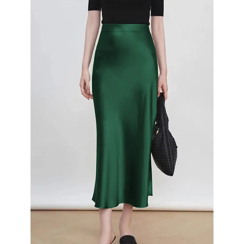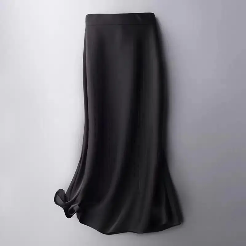 Fashion Oversized Women Clothing Satin Skirts Summer Temperament Solid Color High Waist A-line Skirt Female Simplicity Skirt