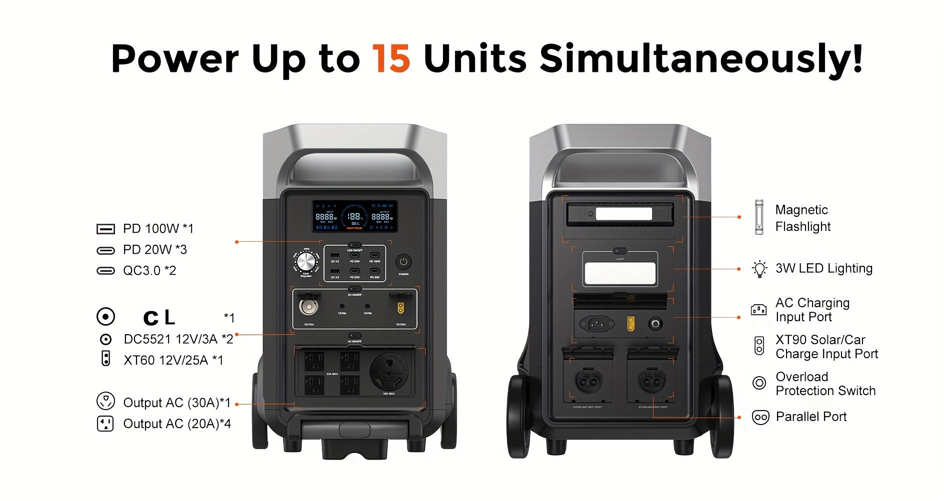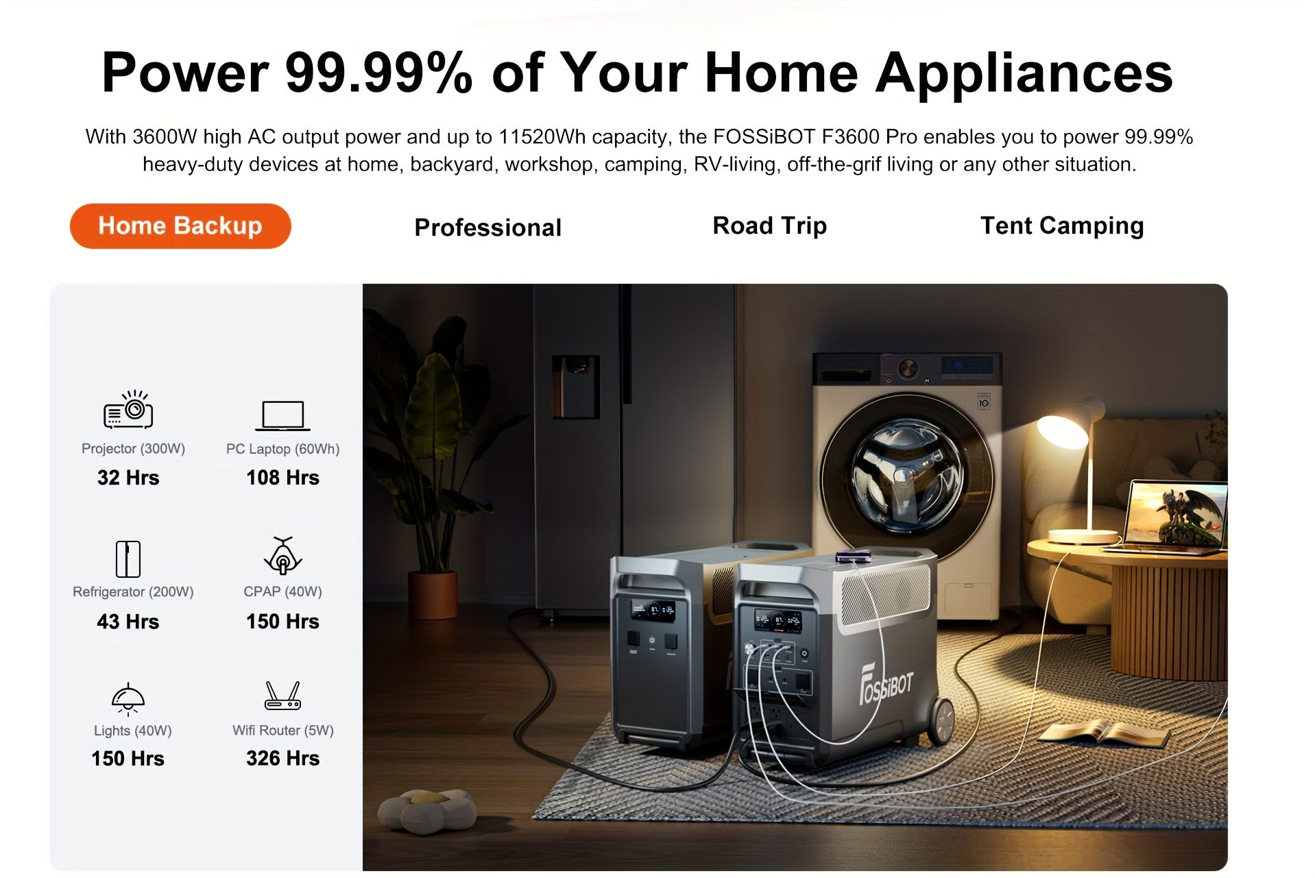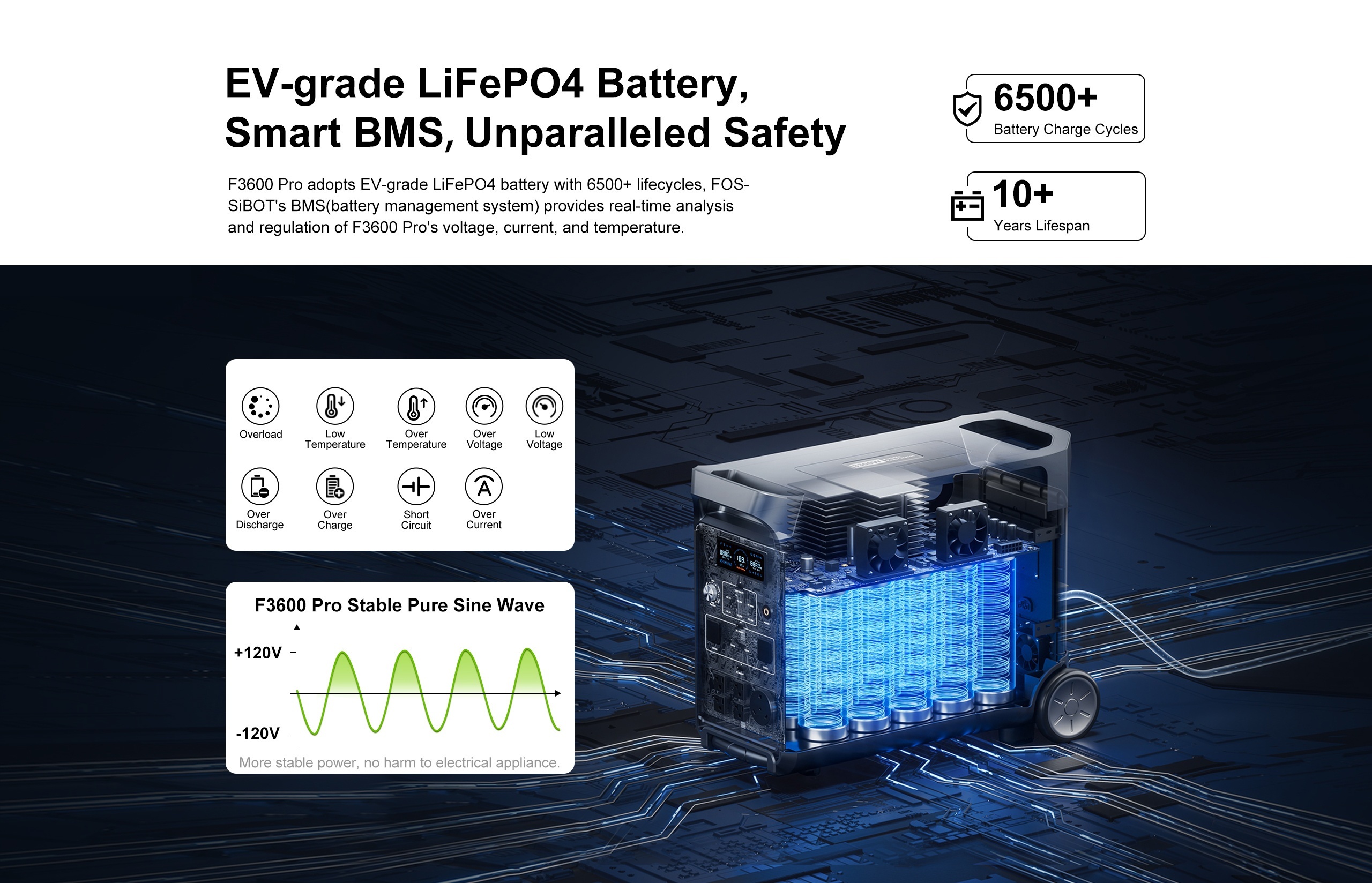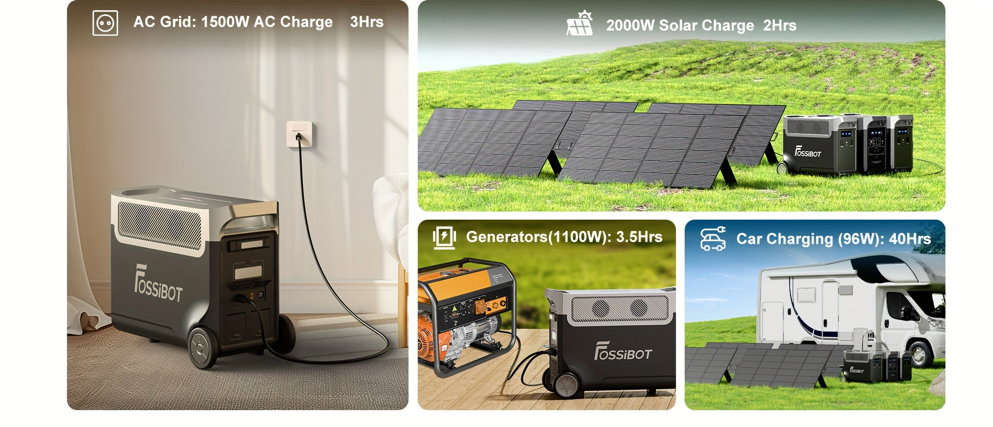 FOSSiBOT F3600 Pro Solar Generator, 3840 Wh LiFePO4 Portable Power Station, 3 X 230 V AC Output 3600 W 7200 W Peak, Storm Generator, Fast Power Storage, Charging, Travel Power Station, Outdoor Road Trips, Christmas, Festival,