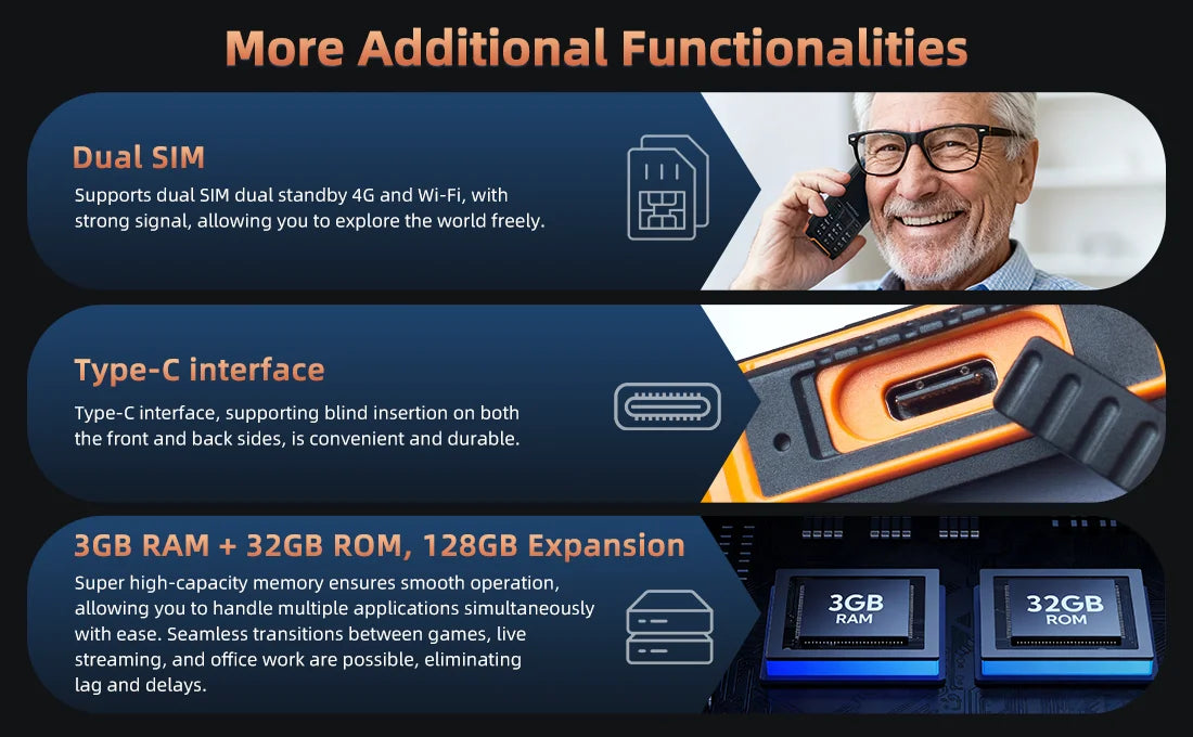 HAMTOD H6 Rugged Phone 2.83 inch Screen 3GB ROM 32GB RAM 3000mAh Battery 5MP Rear Camera 4G Android 11 Support VoLTE Cellphone