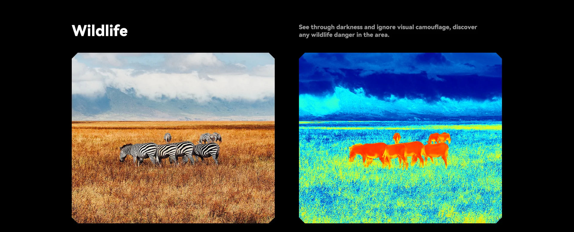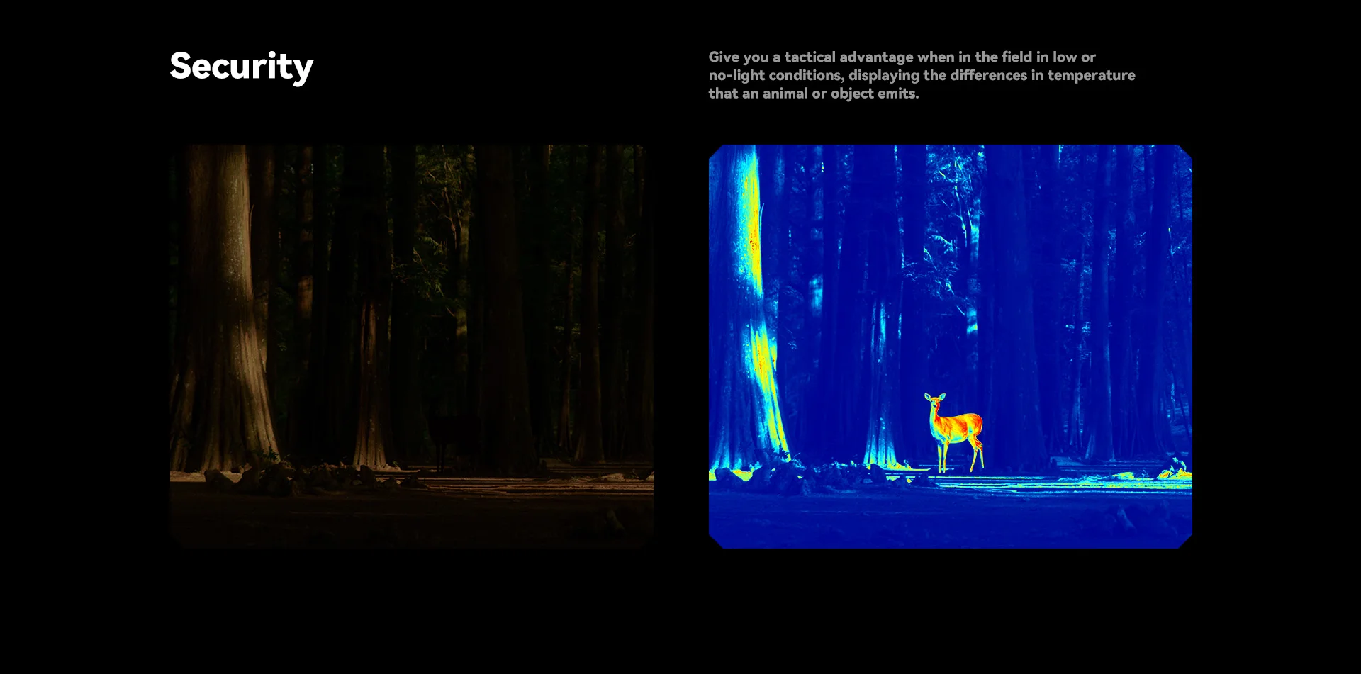 Give you a tactical advantage when in the field in low or no-light conditions, displaying the differences in temperature that an animal or object emits.