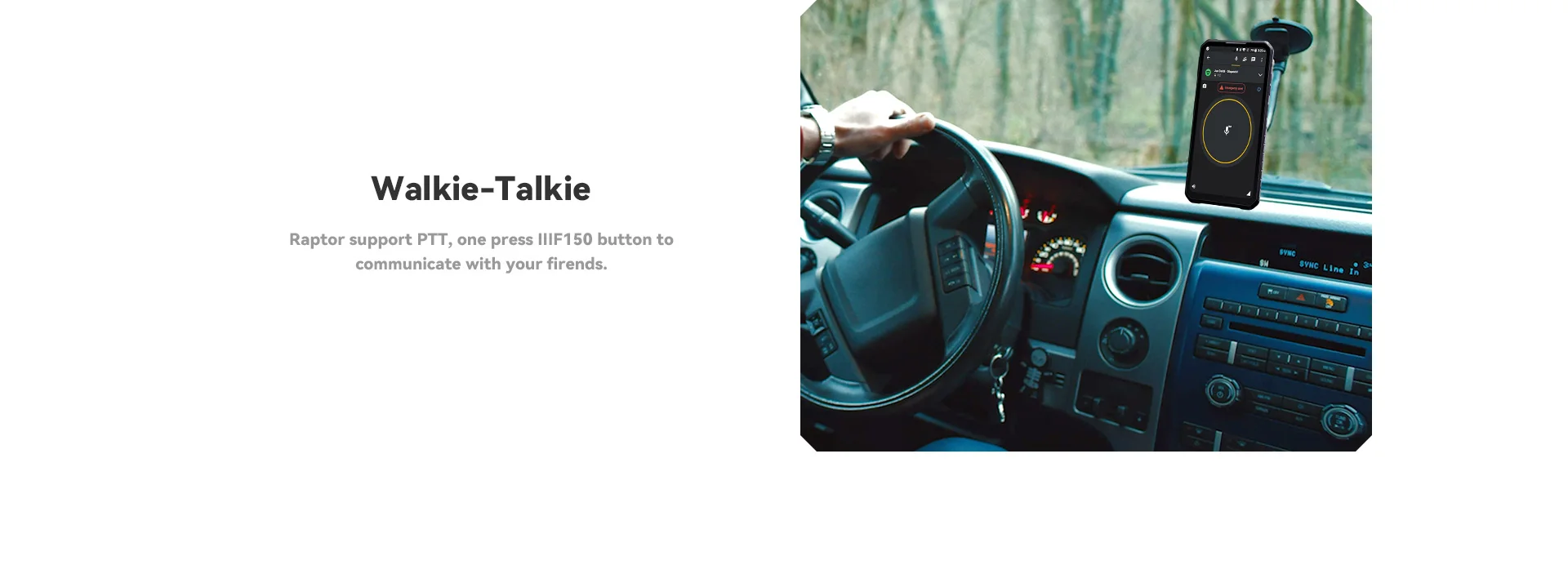 Raptor support PTT, one press IIIF150 button to communicate with your firends.