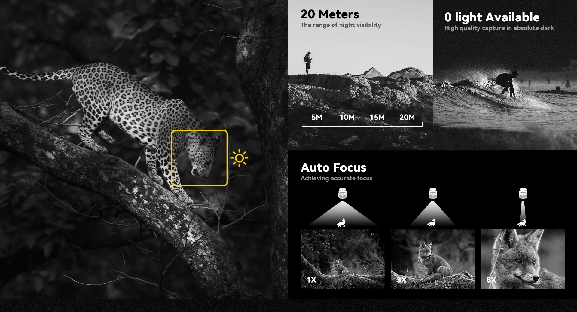 See through darkness and ignore visual camouflage, discover any wildlife danger in the area.