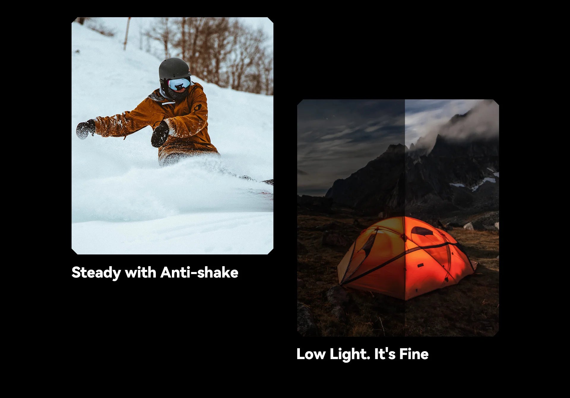 Everything is clear in absolute darkness. The impressive 64MP nightvision camera with two IR LEDs, is able to capture surroundings in the dark without exposing yourself.