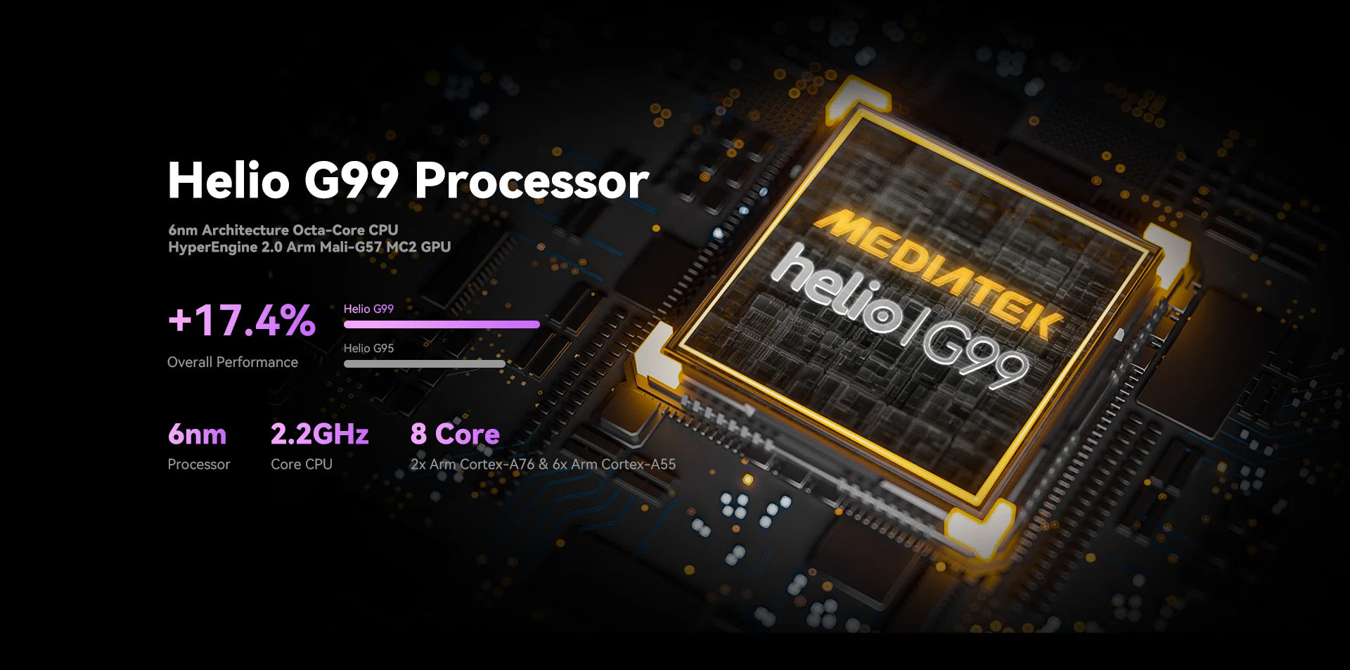 - CPU: Octa-core (2×2.2 GHz Cortex-A76 & 6×2.0GHz Cortex-A55)