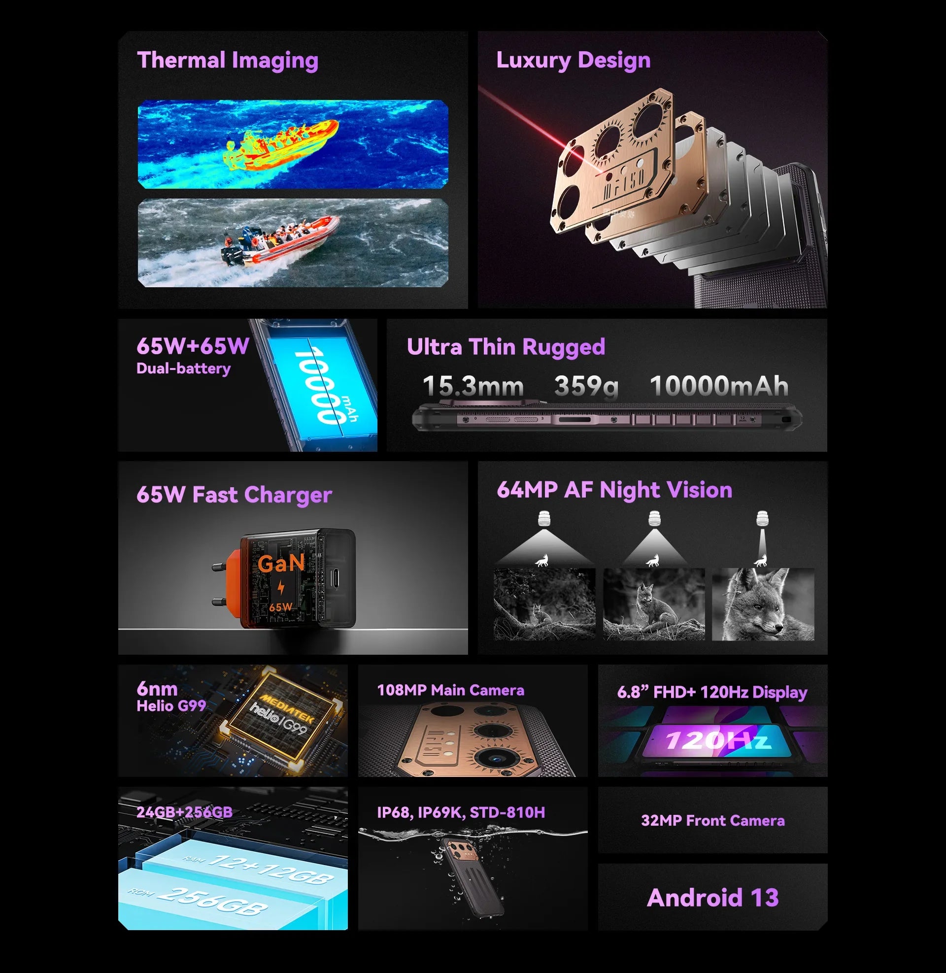 IIIF150 Raptor Rugged Phone 6.8” 120Hz 12GB+256GB Telephone Smartphone 108MP Camera 10000mAh Cell Phone Smartphon 4G Android 13