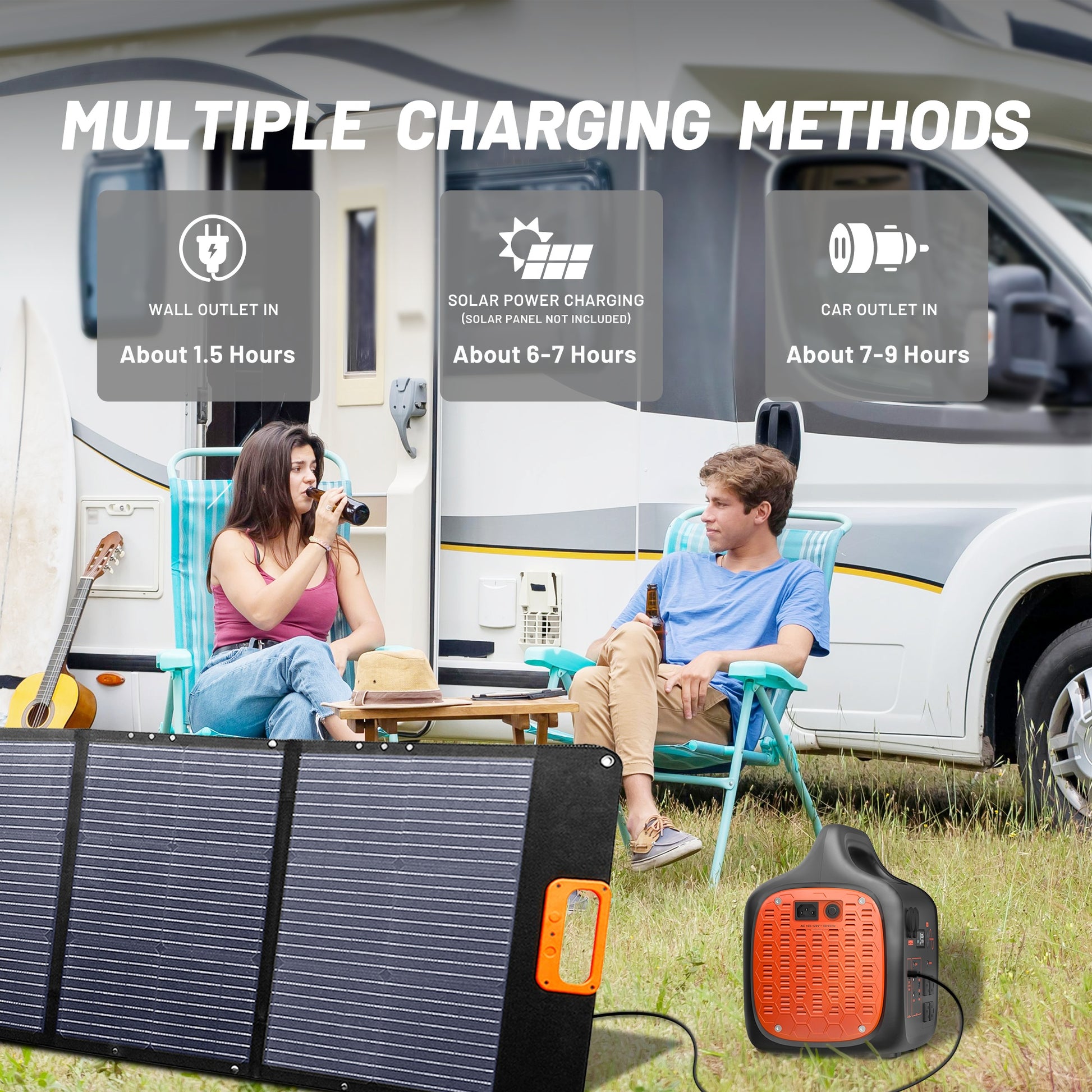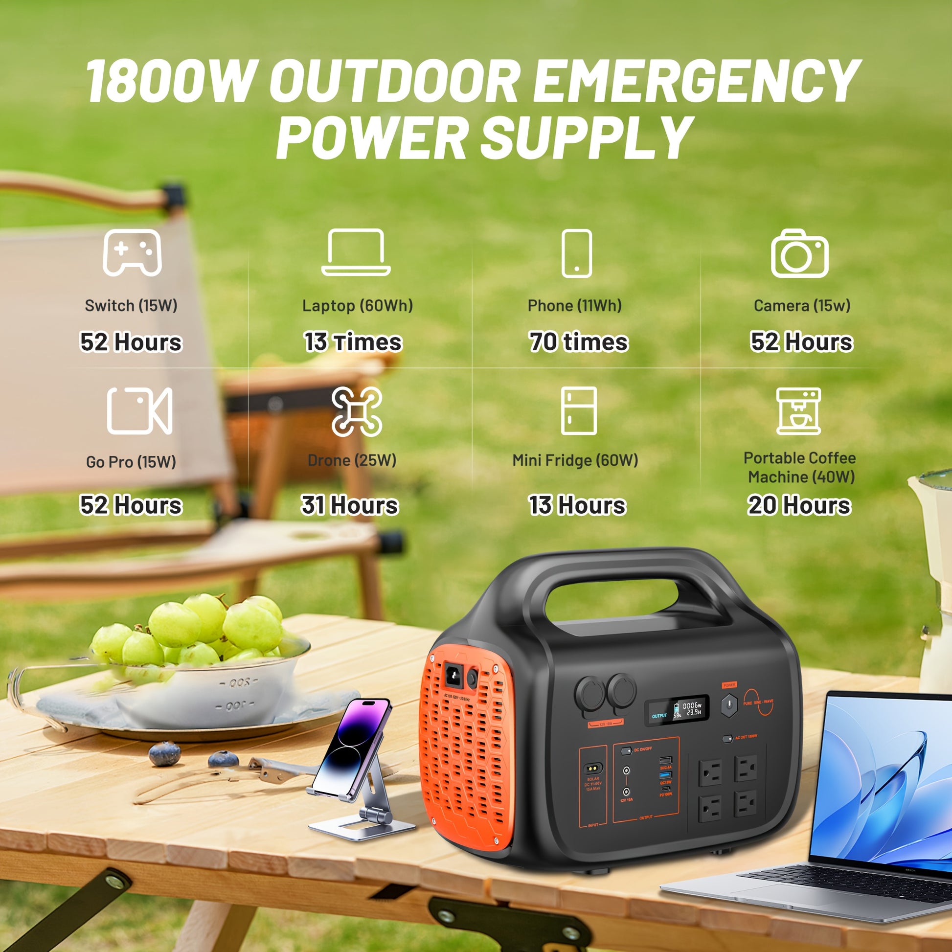 INNOVATIVE LIFE 1800W/1024Wh Portable Power Station With 200W Solar Panel, UPS Function, 1024Wh LiFePO4 Battery, UPS Function For Emergency, Power Bank For Camping Solar Generator, Pure Sine Wave, 1.2 Hour Fast Full Charge