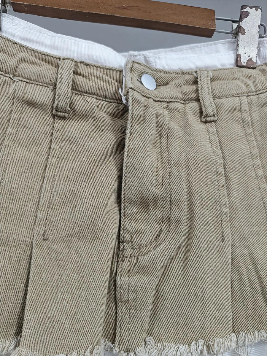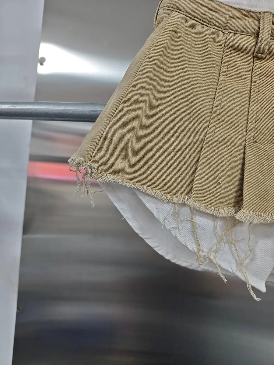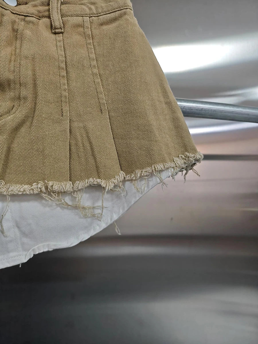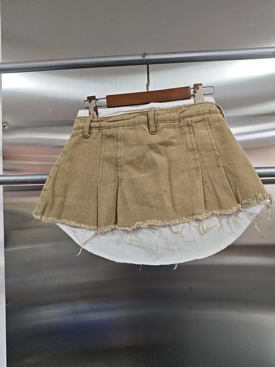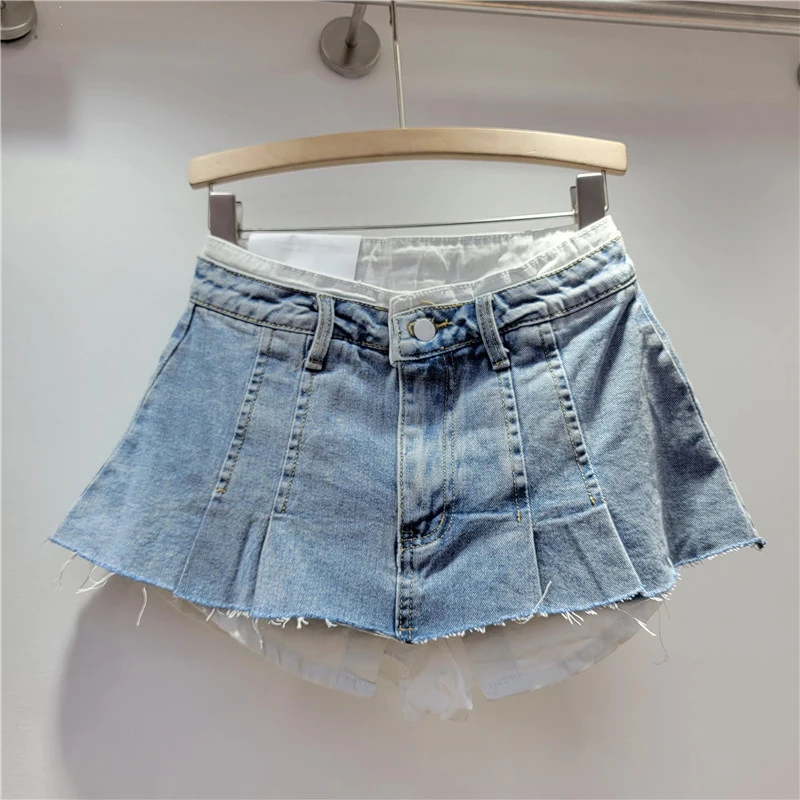 KBQ Temperament Slim Fit Denim Mini Slirts For Women High Waist Spliced Button Daily Casual Commute Skirt Female Fashion Style