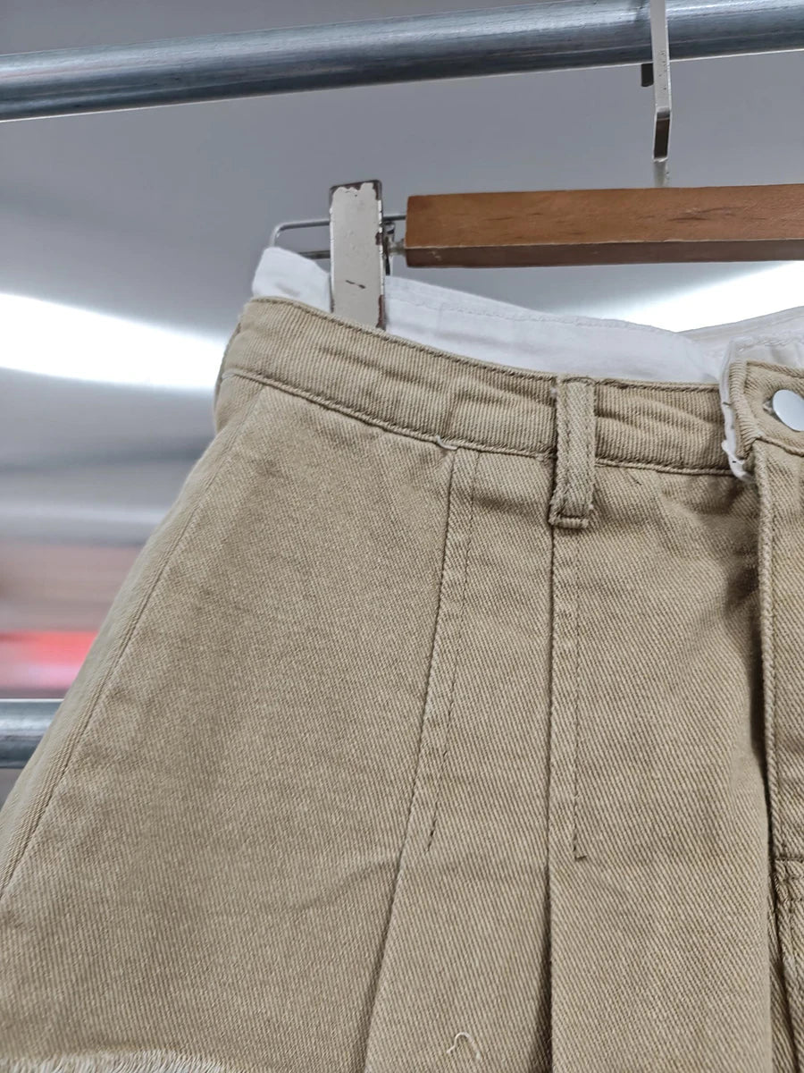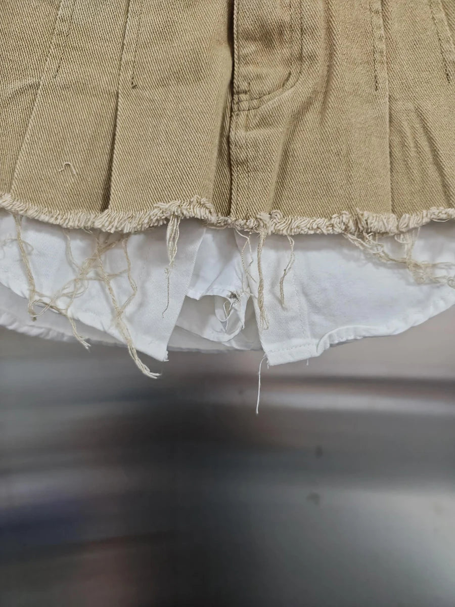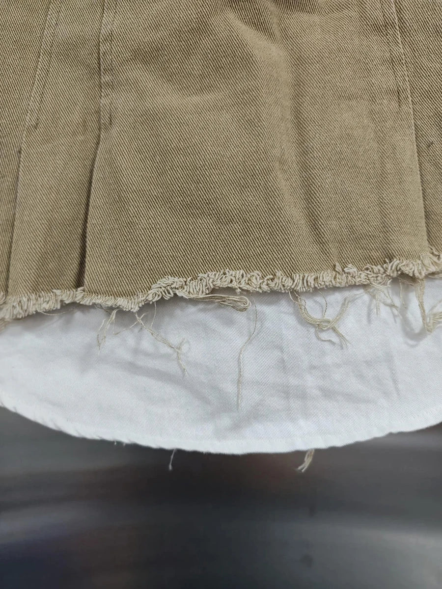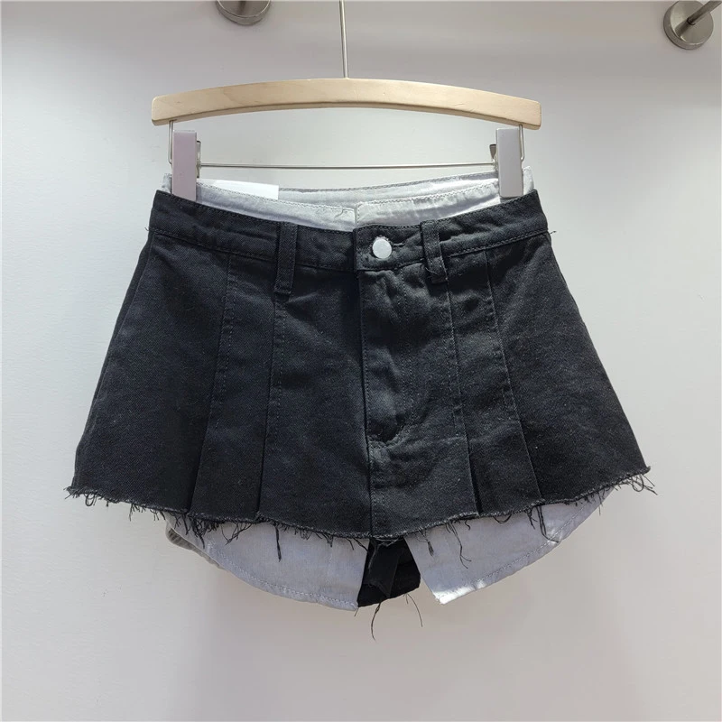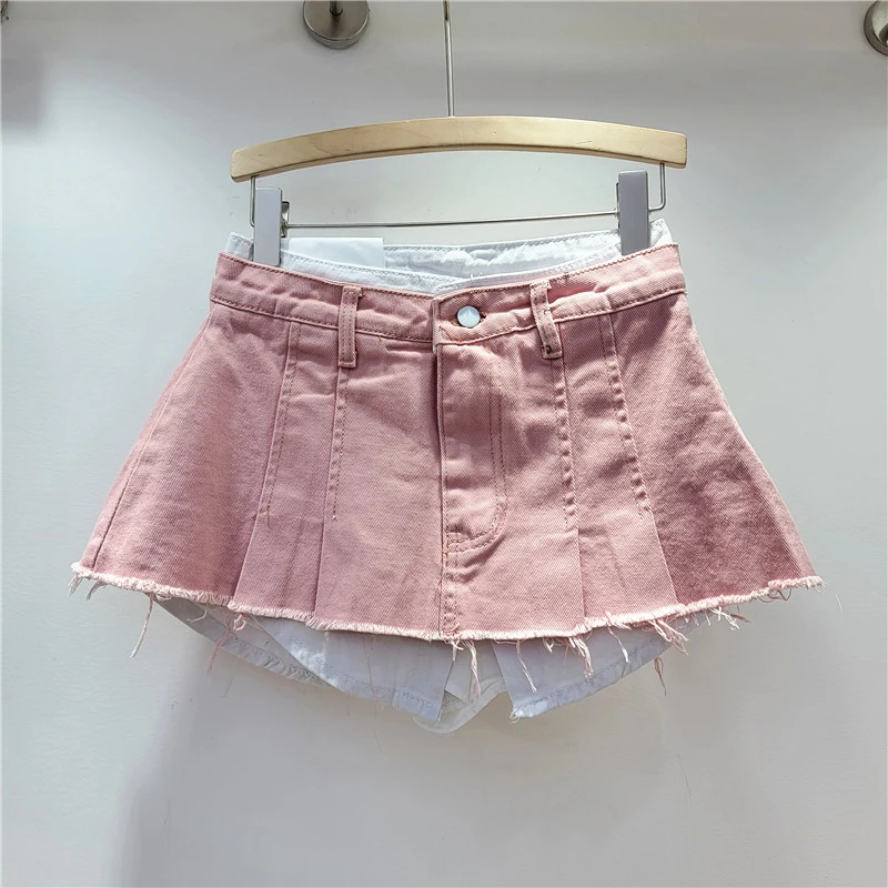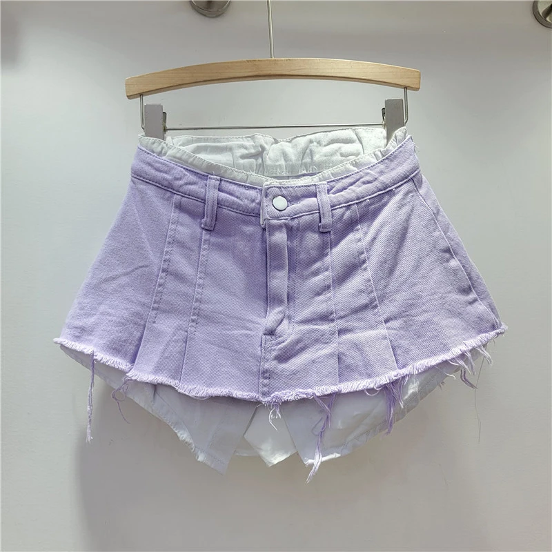 KBQ Temperament Slim Fit Denim Mini Slirts For Women High Waist Spliced Button Daily Casual Commute Skirt Female Fashion Style