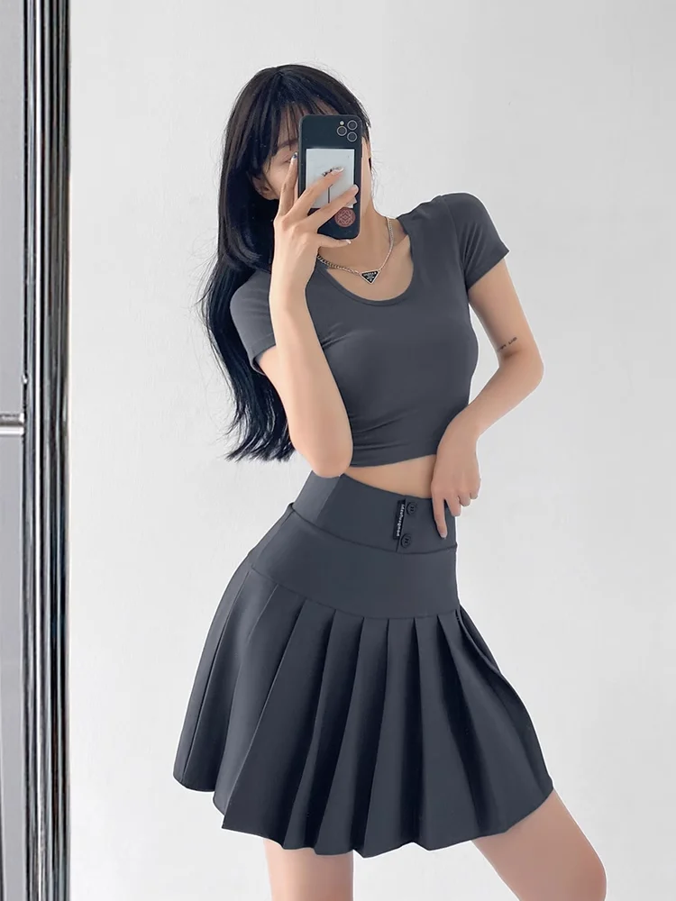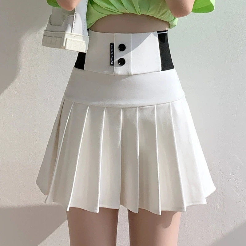 Mini Skirt Women Spring and Summer Original Letter Embroidery Elastic Waist Pleated Skirt A-line Skirt White Black