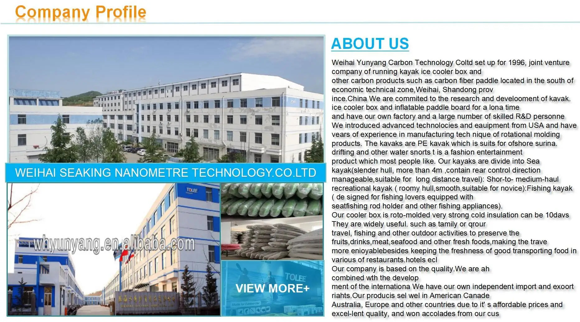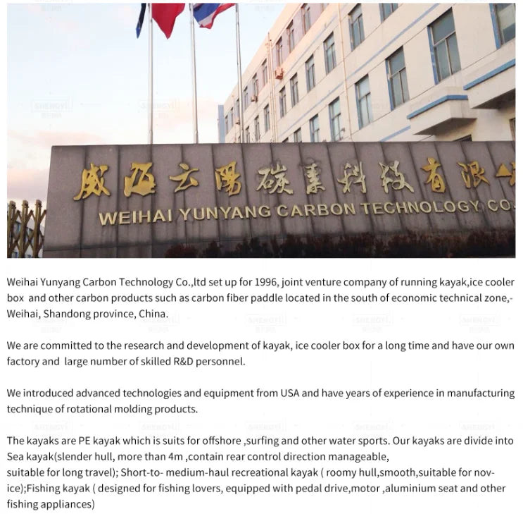 Weihai Yunvana Carbon Technoloay Co. itd set up for 1996, ioint venture company of running kavakice cooler box ancother carbon products such as carbon fiber paddle located in the south of economic technical zone.Weihai. Shandong province, China.