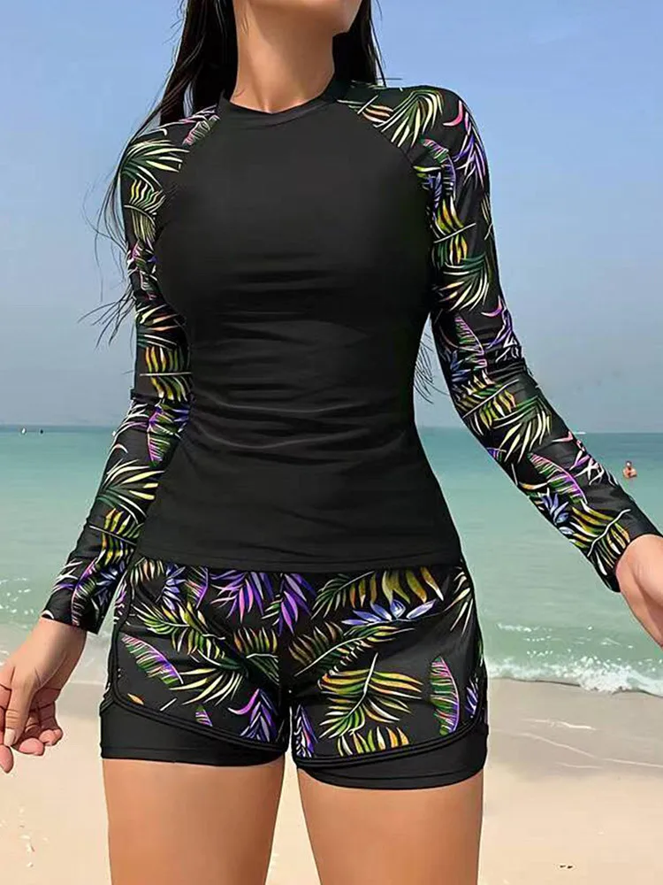 New 2026 Women's Vintage Print Swimsuit Rash Guards Long Sleeve Swimwear Surfing Sports Pool Swimming Suit Two-Piece Bath Suits