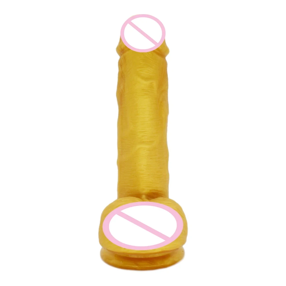 New Arrivals Silicone Golden Realistic Dildos Female Masturbation Suction Cup Penis Lesbian Adult Products