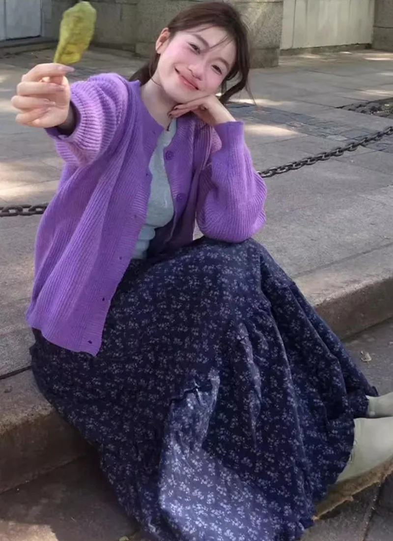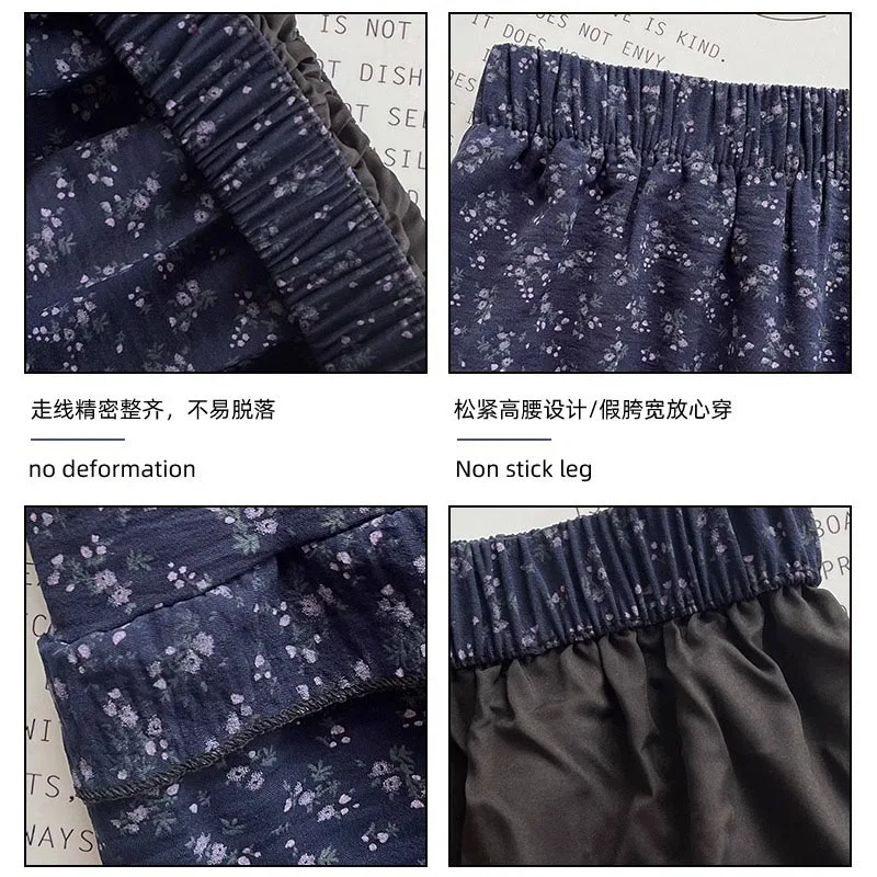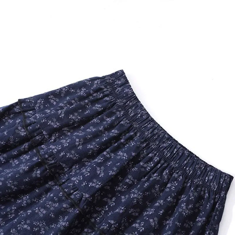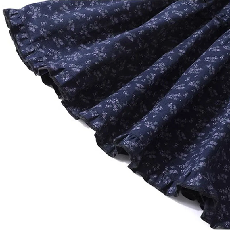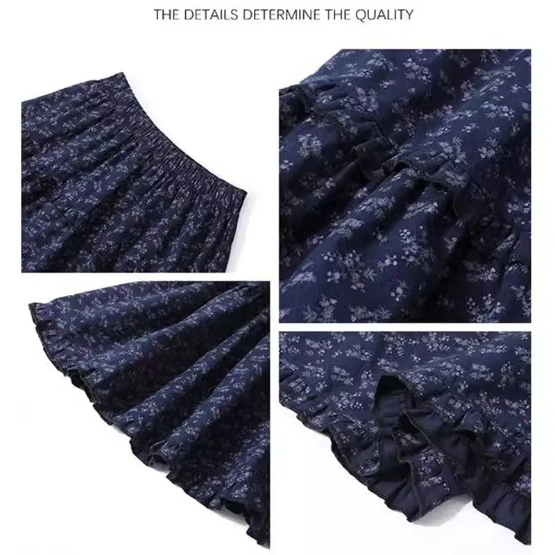 New Elegant Dark Blue Floral Women High-Waisted Retro Blue Floral Skirt Female A-line Skirt Casual Lazy Wind Long Skirt