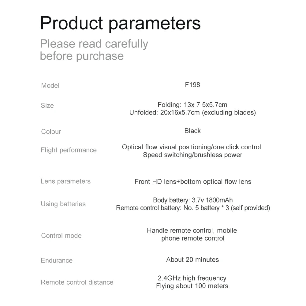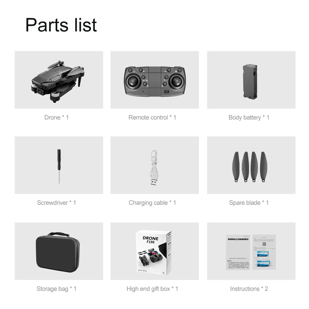 New F198 Drone Professional Dual Camera With 1080P WIFI FPV HD Aerial Photography Wide Angle Brushless RC Foldable Quadcopter