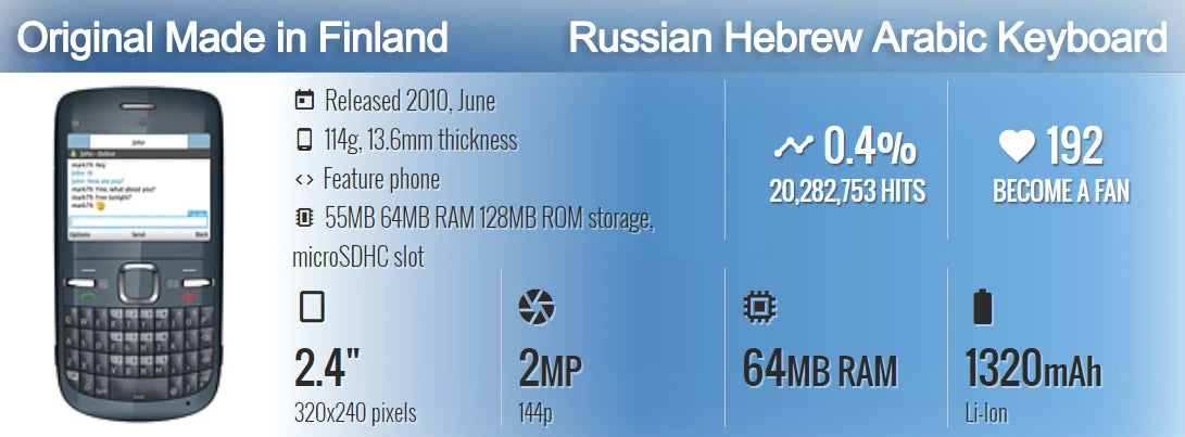 Original C3-00 C3 (2010) Mobile Cell Phone Russian Arabic Hebrew English Keyboard Made in Finland Unlocked