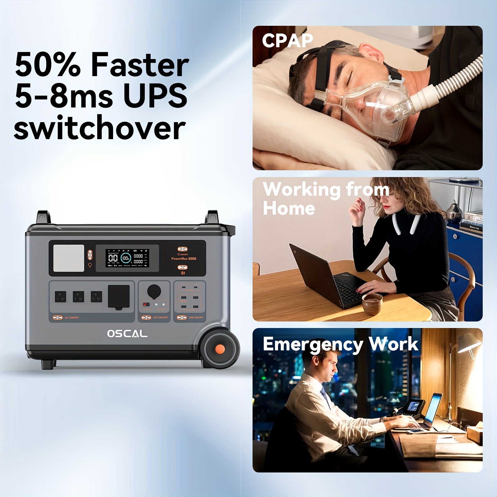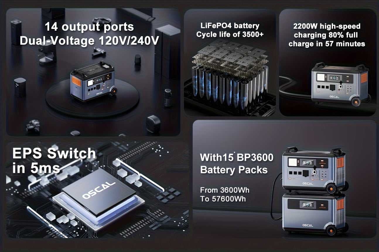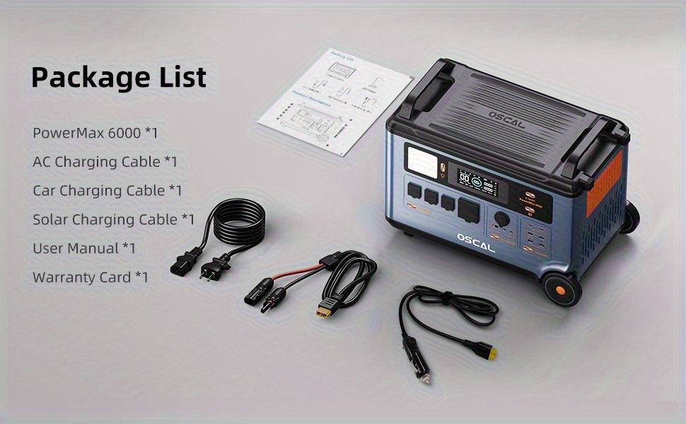 OSCAL PowerMax 6000 Solar Generator | 3600Wh/6000W Power Station with 2x500W Solar Panels, 120V/240V Split Phase Voltage AC Outlets (9000W Peak), 2400W Solar Charging, Emergency Home, Battery Backup, Plus A Bonus 30W Solar Pa