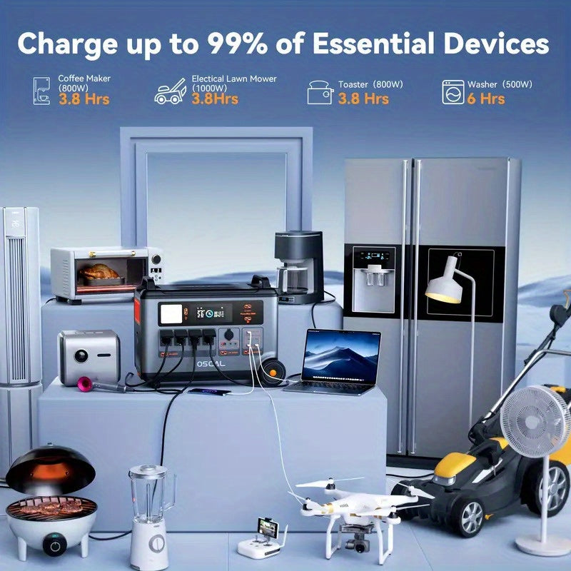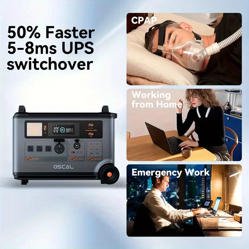 OSCAL PowerMax 6000 (Surge 12000W) Portable power station, 3600Wh LiFePO4 expandable solar generator with 4 AC sockets, 1.2 hours full charge, 10 ms UPS, suitable for home emergency, outdoor camping, road trips