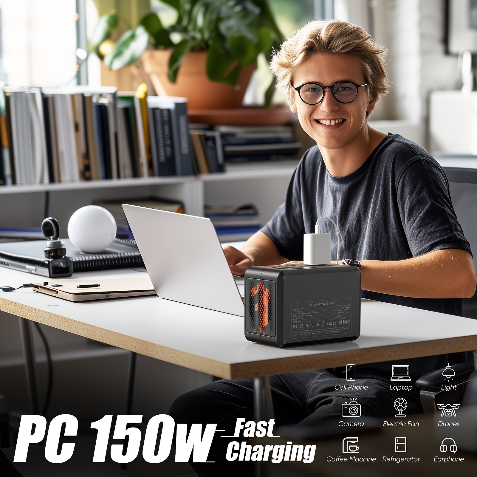 Portable Power Station 150W Small Solar Generator With LiFePo4 Battery 99Wh (LFP), PD18W, USB QC3.0, 2 110V AC Outlet, Outdoor LED For CPAP Home Camping Emergency Backup
