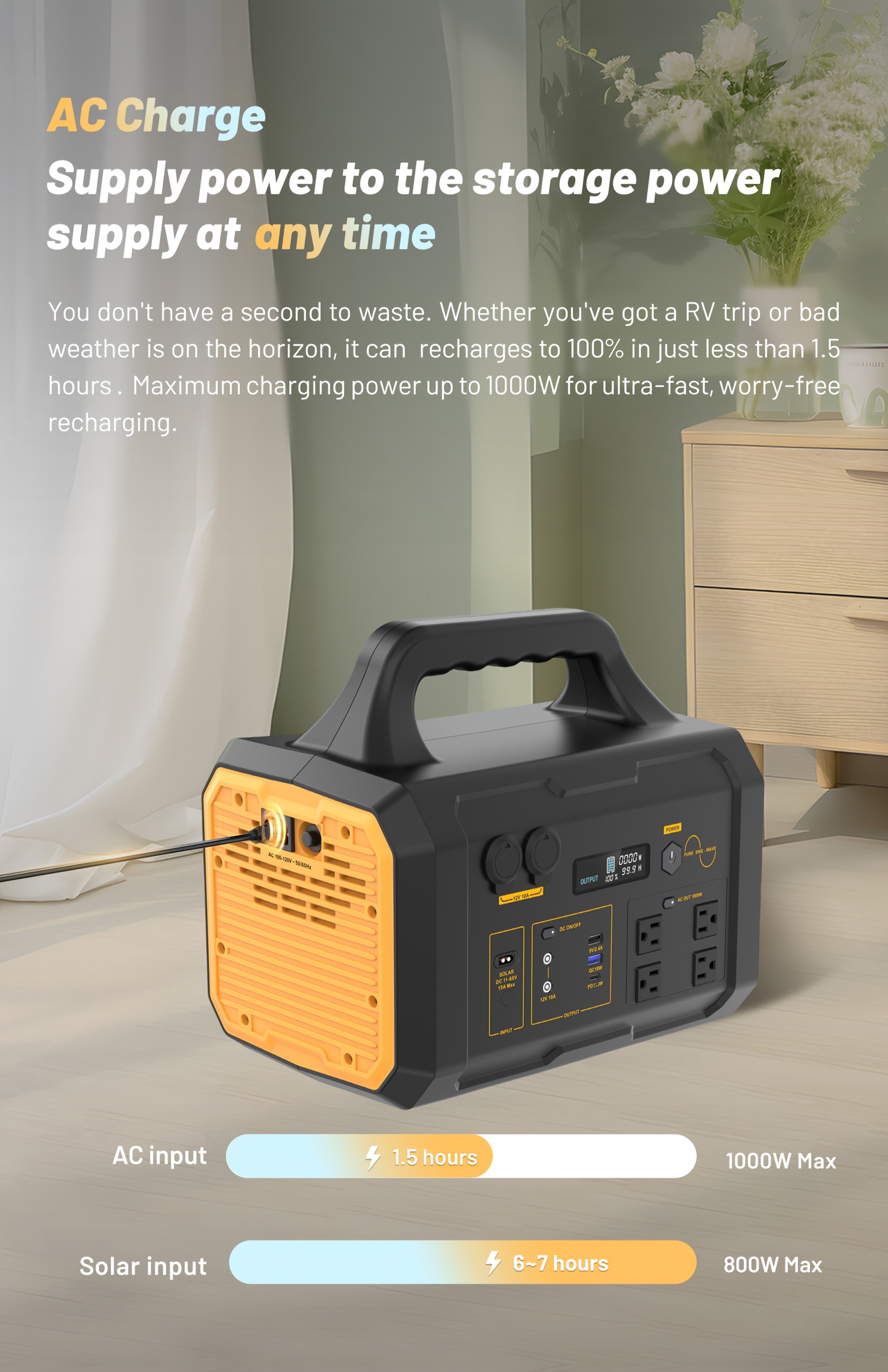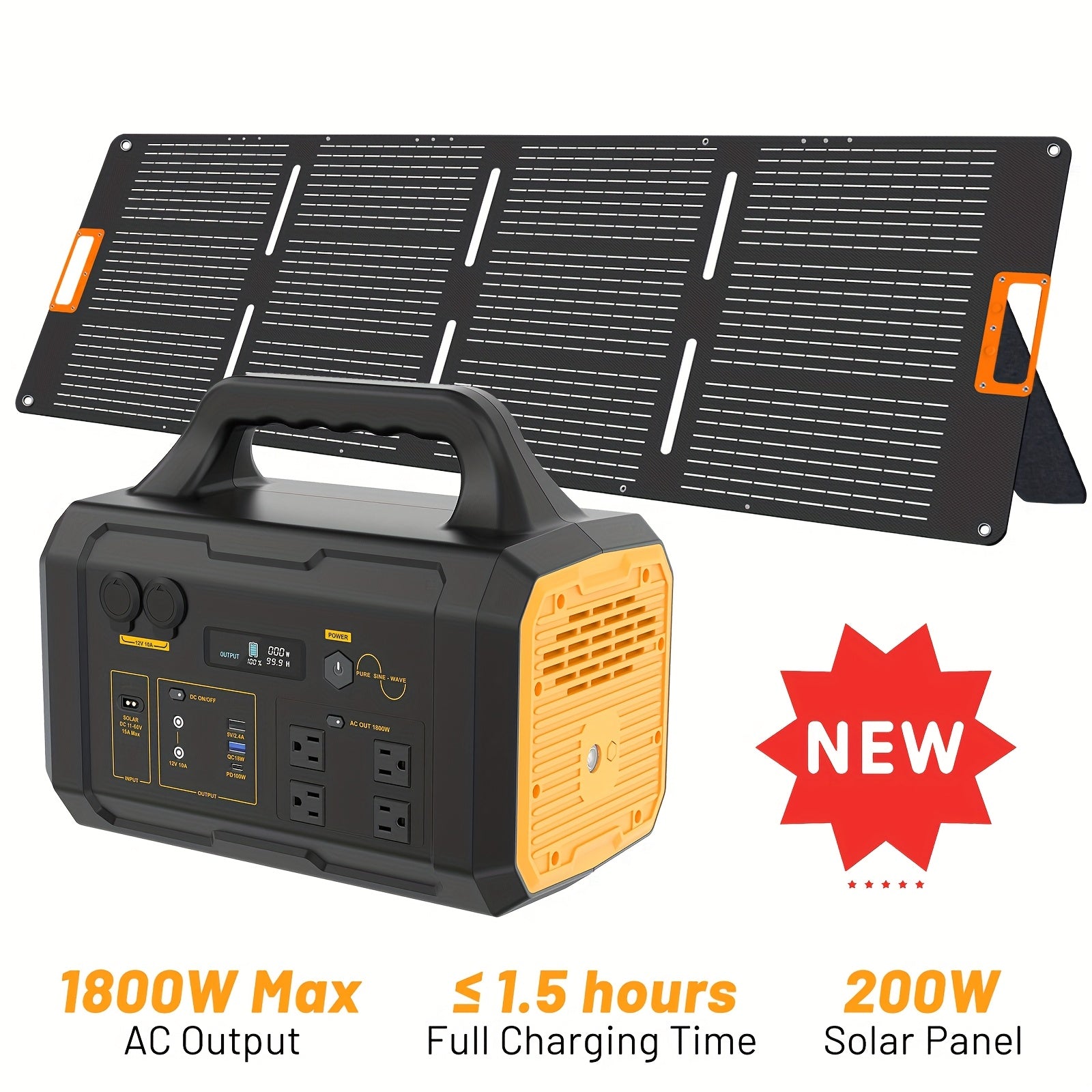 Portable Power Station 1800W with 200W Solar Panel, Solar Generator Backup Battery Power Bank with UPS Function, 1.2 Hour Fast Full Charge, 1024Wh LiFePO4 Battery for Outdoor Camping RV Trip Home Emergency Use