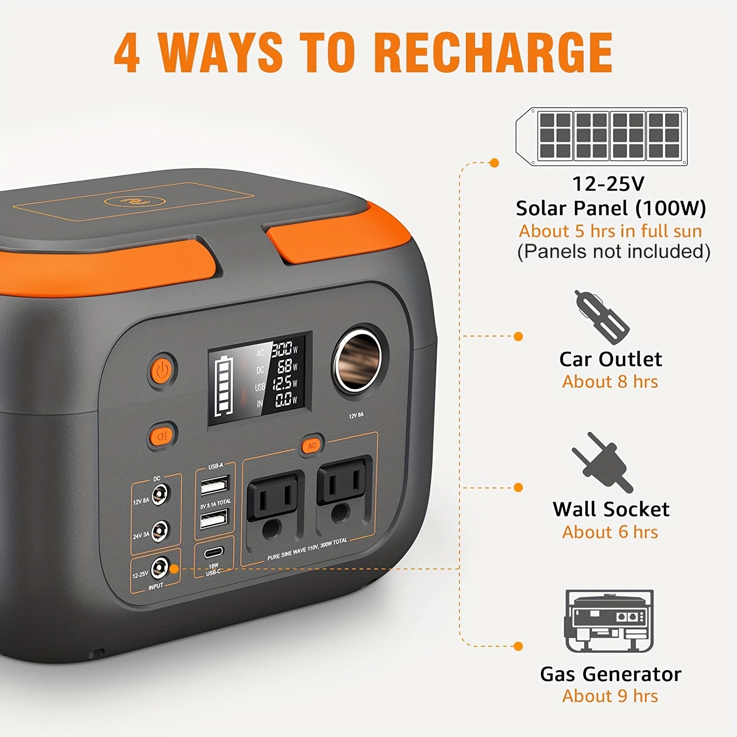 Portable Power Station 300W Solar Generator (Solar Panel Not Included), High-Capacity Battery Pack, 110V Pure Sine Wave AC Outlet, DC USB Mobile Power Supply for Camping, RV Trips, CPAP Machines, and Hurricanes, Outdoor Energ