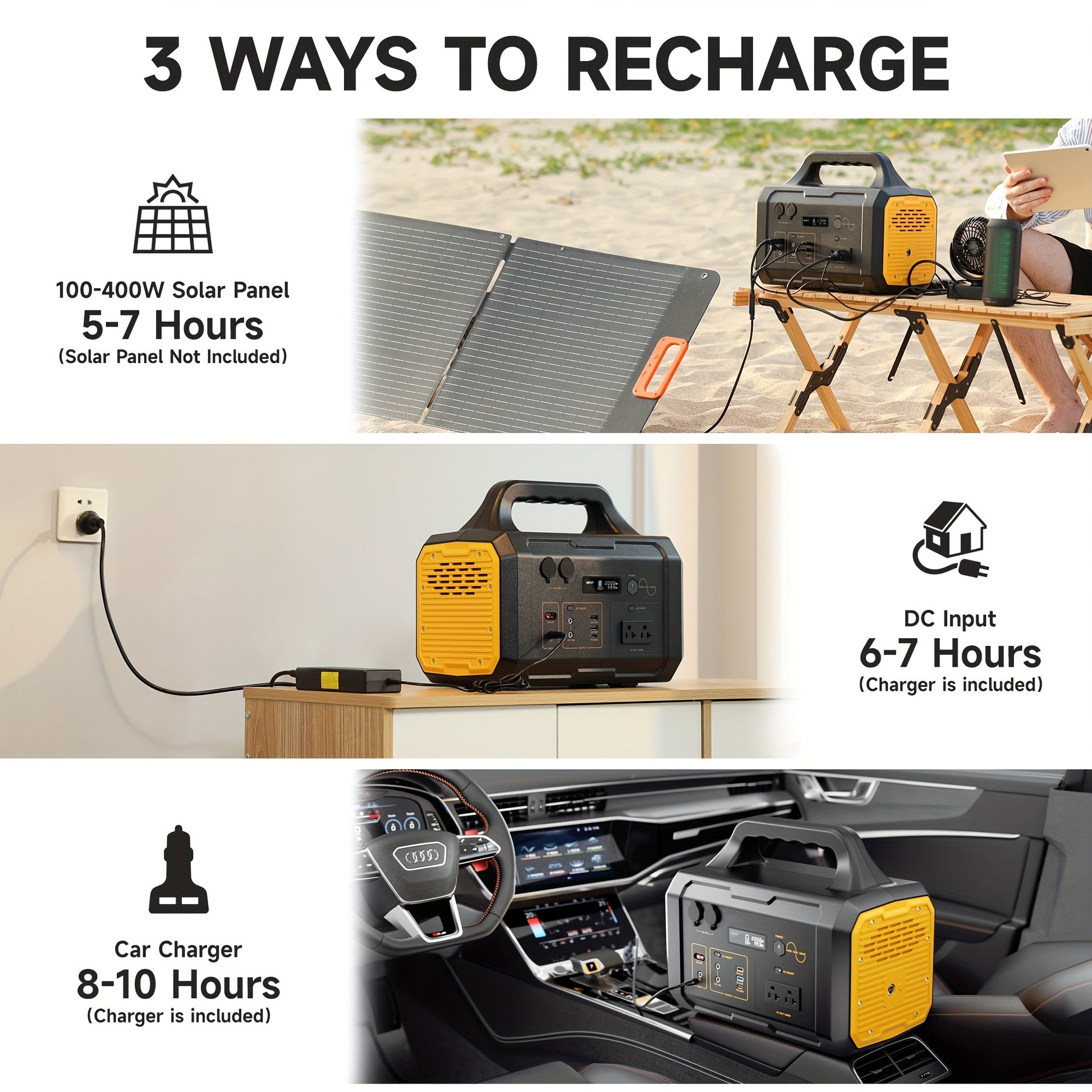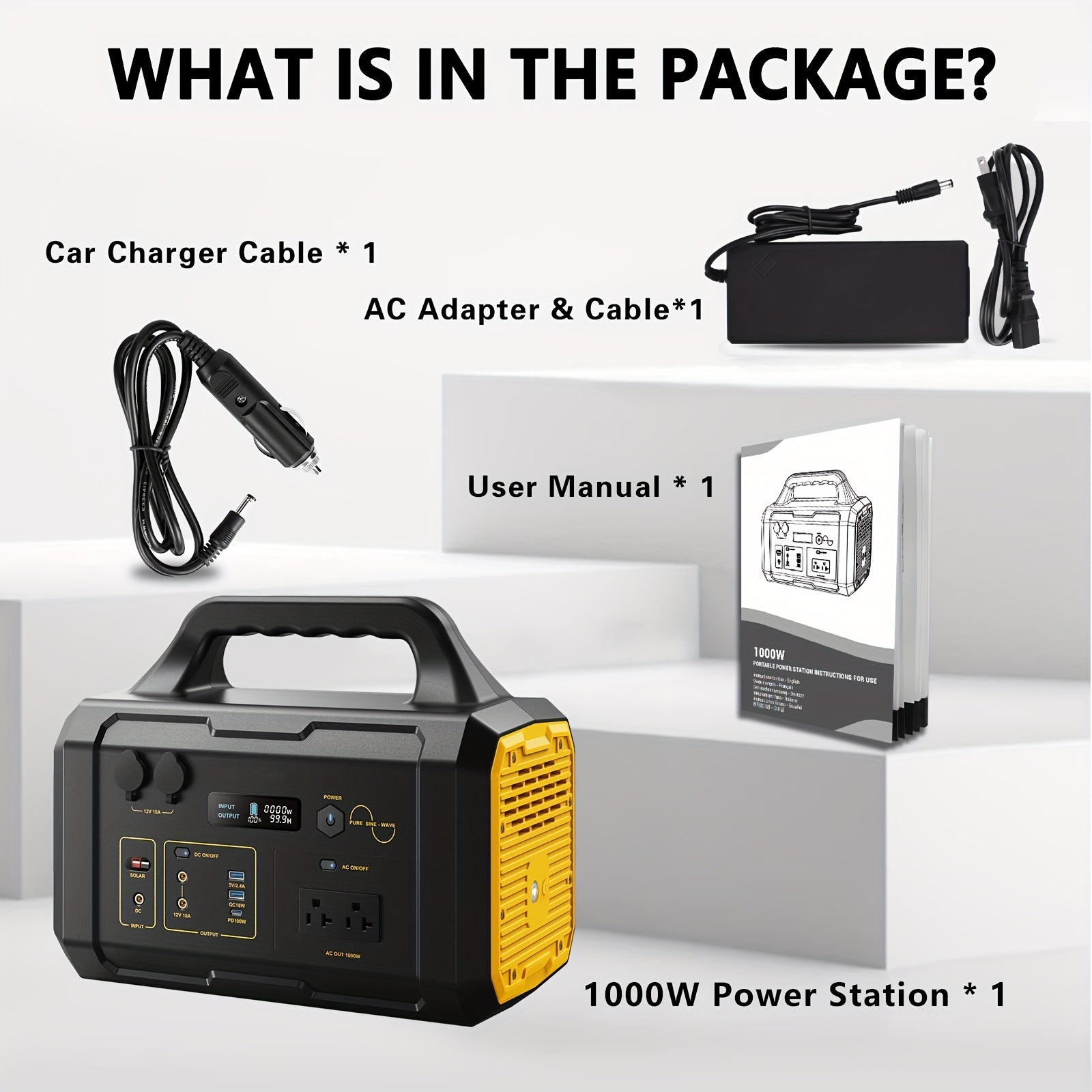 Portable Power Station For Camping 1000W, 1075Wh LiFePO4 Battery-Powered Generator With 1000W AC Outlets, 100W PD, USB, 9 Output Ports, Solar Generator For Camping Gear, Survival Gear, Home Backup, Outdoor Adventures, And Eme