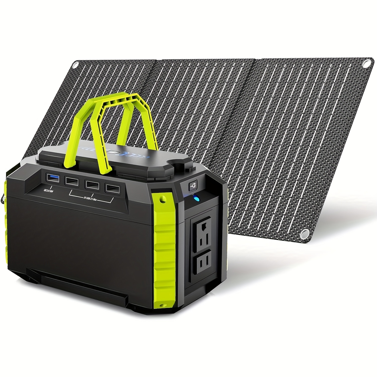 [Portable Power Station] Portable Power Station 222/150/88Wh | 40/30/21W Solar Panel, Camping Solar Generator, Laptop Charger, Power Bank with AC Outlet 110V, 4*USB, DC Ports, LED Flashlights for CPAP Home Camping Hurricane E