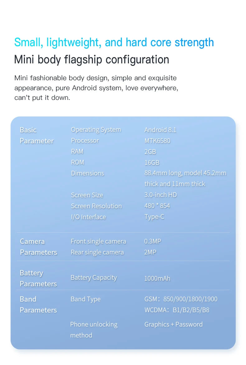 SOYES XS15 Mini Android8.1 Smart Phone 3.0 Inch Display 2GB RAM 16GB ROM Dual SIM Standby Play Store 3G Little Phone