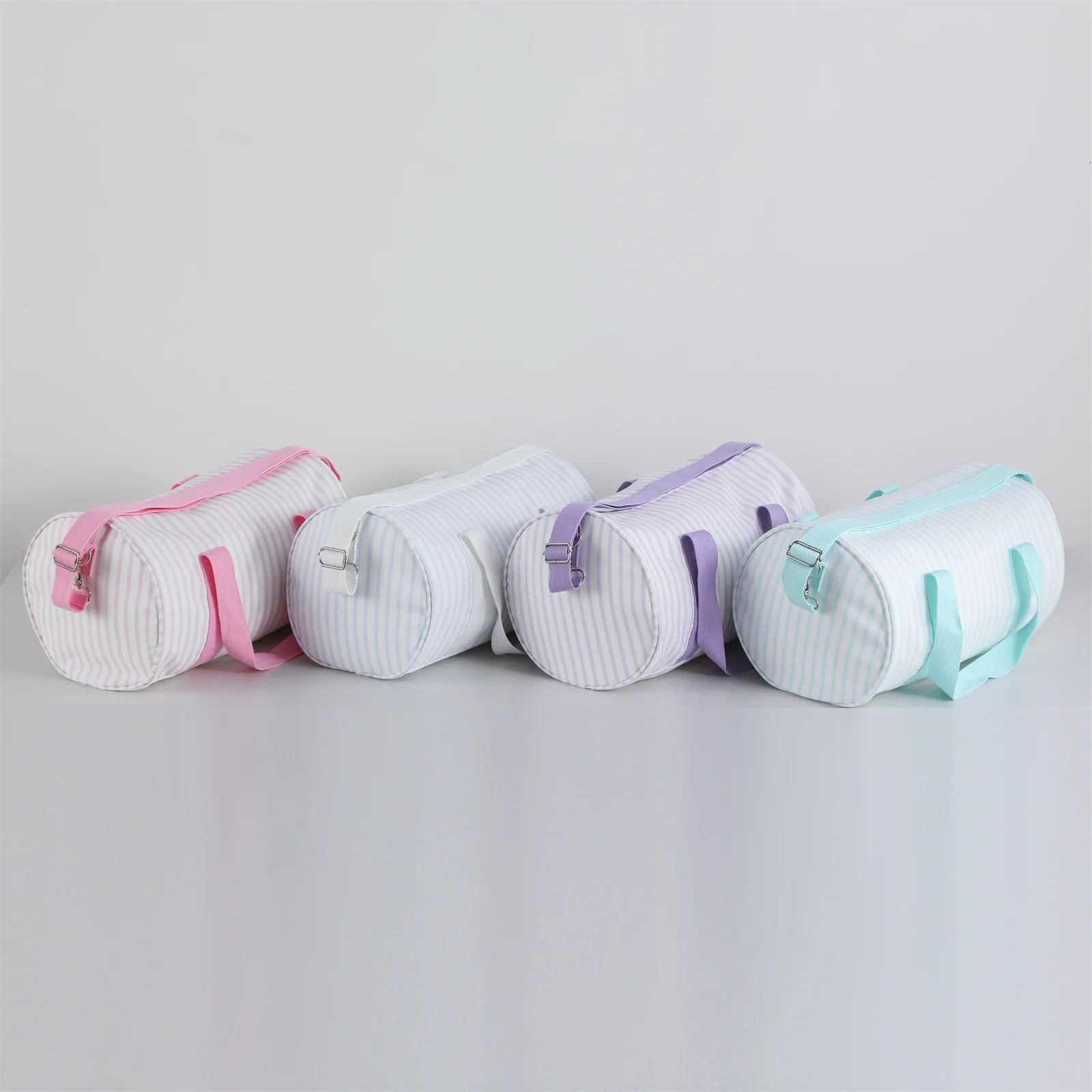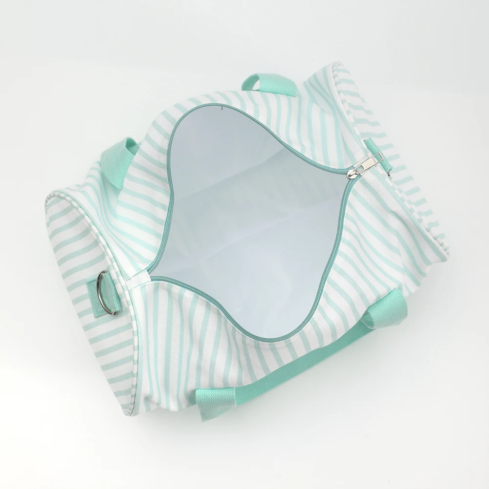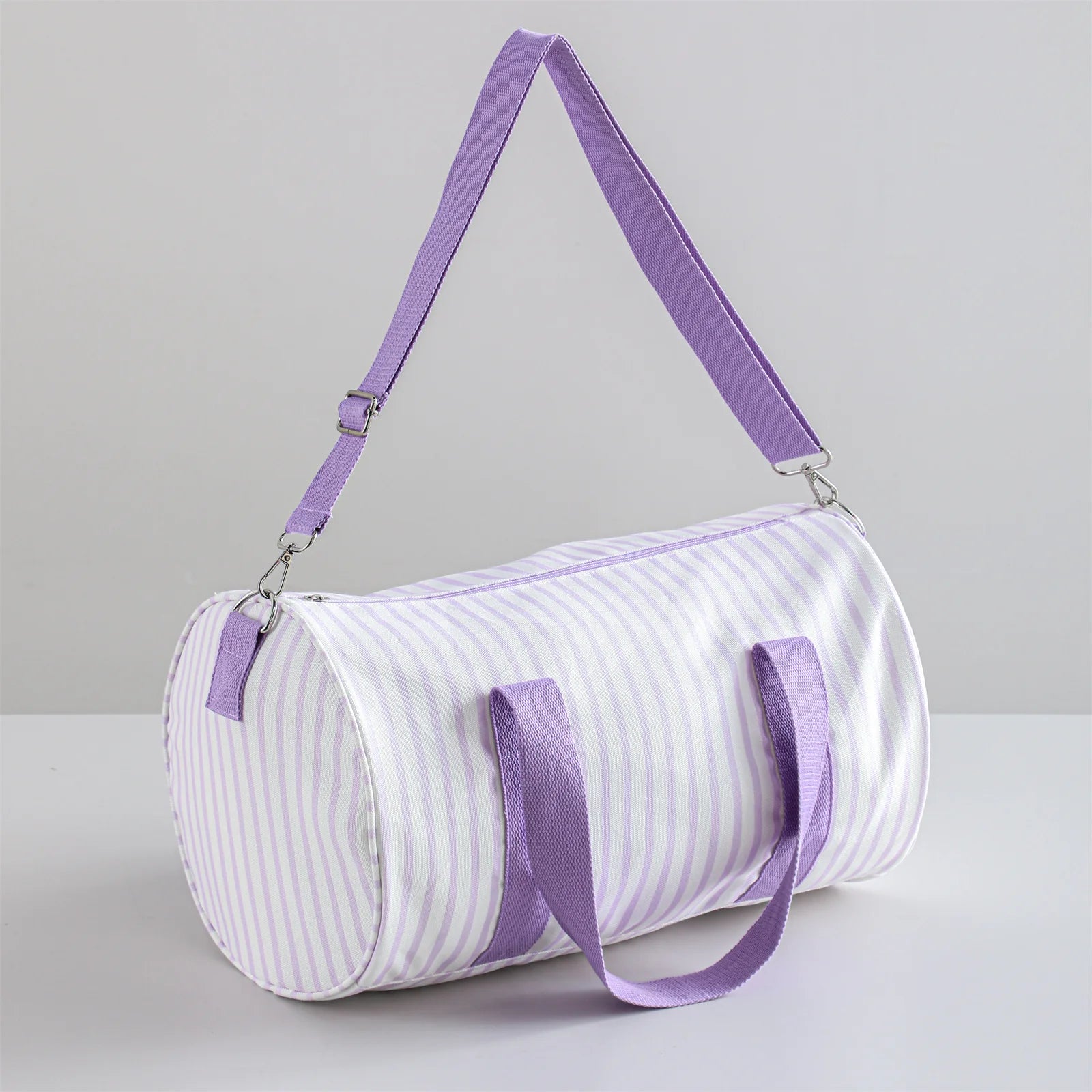 Striped Duffle Bag Women Canvas Travel Overnight Bag With Detachable Adjusted Strap Weekender Bag Vacation