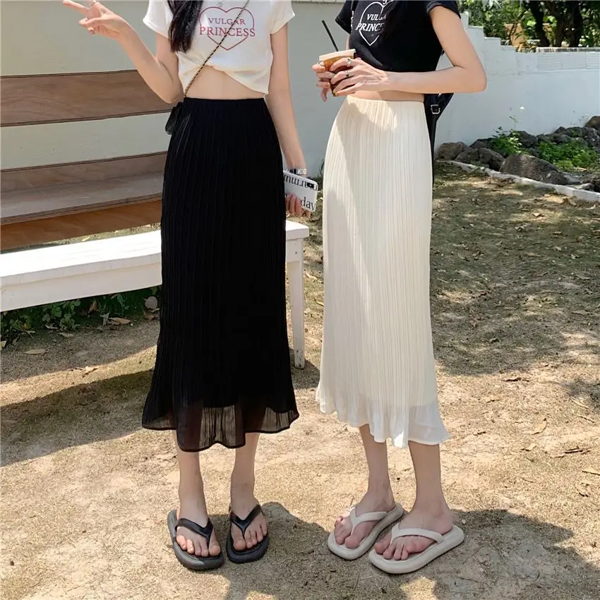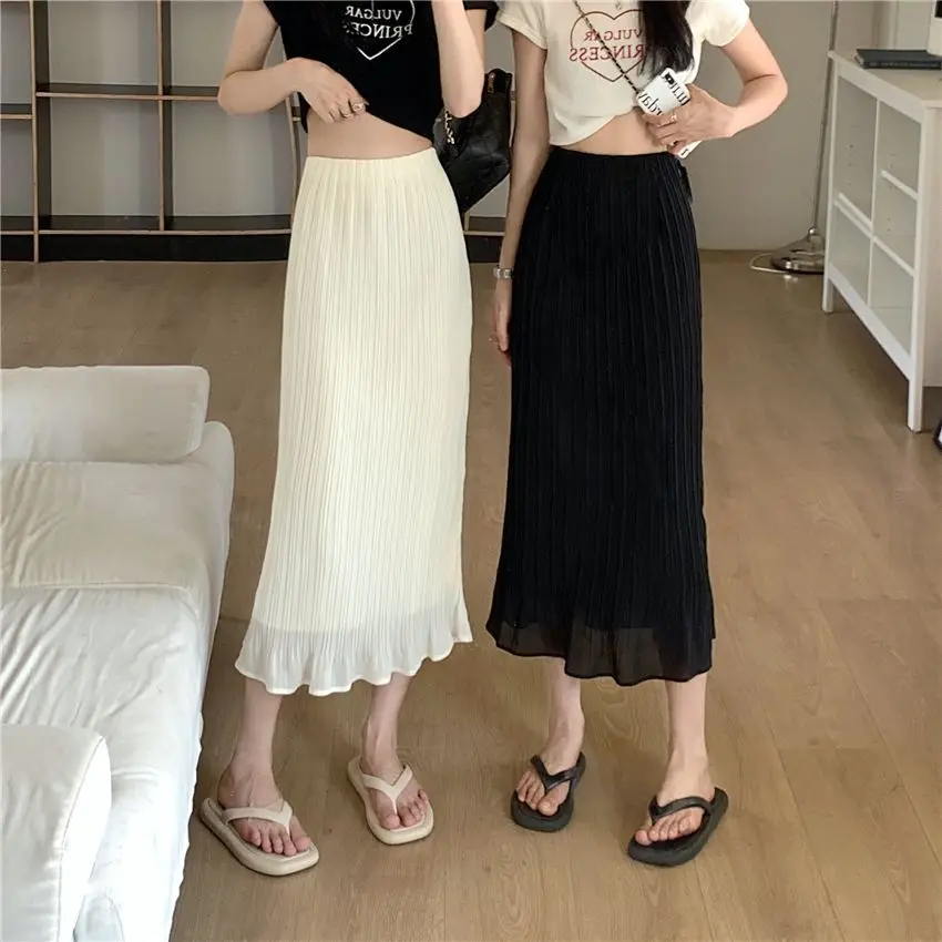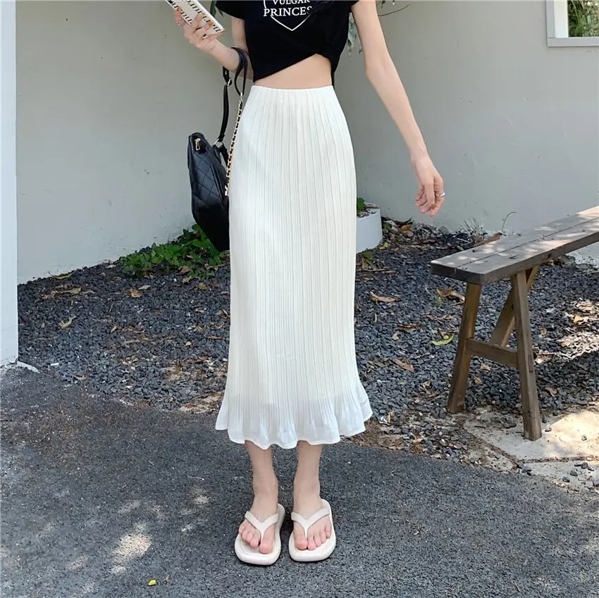 Summer New Fashion Solid Spring Wrapped Hip Fishtail Skirt Women Patchwork Elastic Waist Elegant Gentle Mid Length A-line Skirts