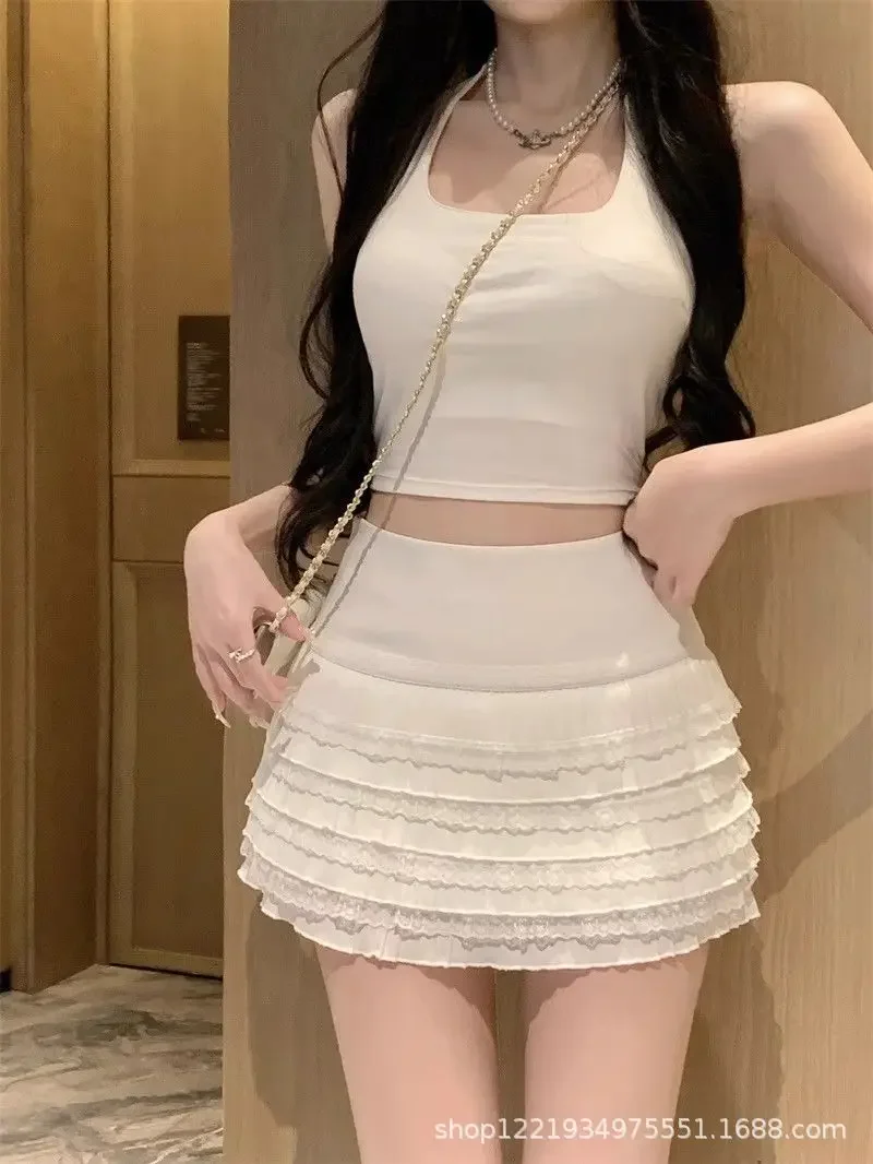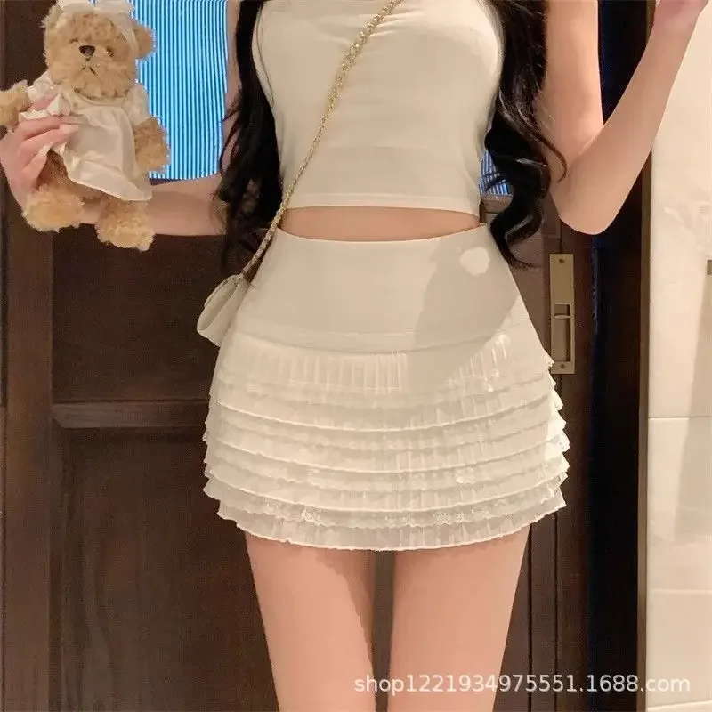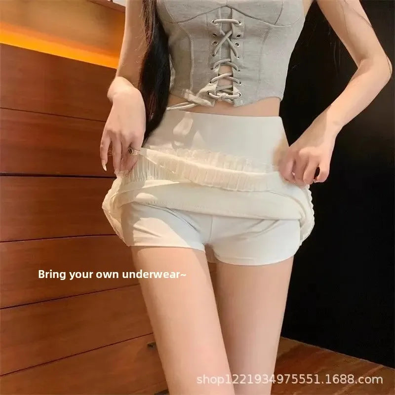 Sweet And Spicy Korean Style High Waist Pleated Mini Skirt Women's Summer New Fashion Lace Wrap around Short Skirt