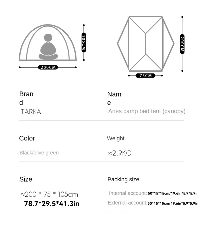 TARKA Camping Bed Tent Set Inner Outer Tent for Wild Hiking Portable Solo Outdoor Camping Shelter One Person Tent