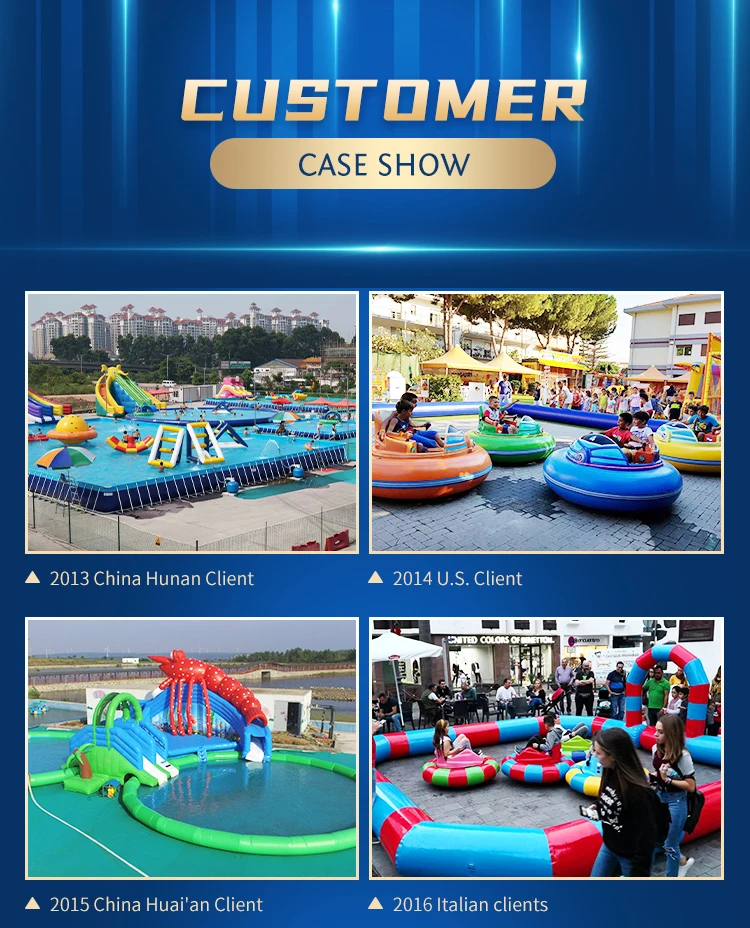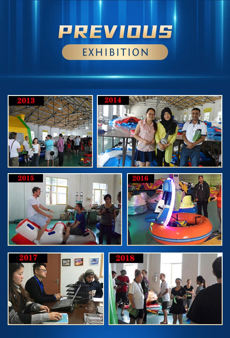 Q: Can print with custom logo? A: Yes, all most our products are OEM, you can offer you photos for the product’s printing. Q: Can you accept Small order quantity? A: Yes, 1pc is also ok. Q: What color can I choose ? A: We can make follow customer PMS color. Q: Your payment term and shipping term ? A: 1. We accept T/T, Western Union, MoneyGram. 2. It depends on the dimension of the goods and weight, We usually delivery by air, boat, and Express( DHL, Fedex, TNT) Q:Can you design one specially? A:send us details and a sketch of your requirements ,then woe will quote you our best price. Q: What kind of warranty you give?What about size and color? A: Our inflatable games have 3 years of warranty. The size and color can be changed,according to your requirement. But we have normal size. Q:How do I order? A:1.you can just send us your purchase order with your detail requirement. 2.if you have your special design, please email us for price and order information. Q:Do my money safe? A:Yes, i think you donnot need to worry about this. First, we are on alibaba this platform for business, we need to keep our good reputy; Second, we are real factory in China, you can find our business license in China government. Third, we can provide our customer contact information to you, they have cooperated with us, you can check with them. Q:If your product has quality problem, what can i do? A:We are trying to make our product in best quality for you, but unfortunately if your product has a quality problem, please don't worry, take pictures to us, we will find the cause of the problem, and make a solution policy for you. Q:I never buy anything from China, how can i do? A:We have years experience on the I/Export, we can arrange the shipping , custom etc for you, we will also check all the cost for you including the tax you need to pay to your government. After you get all the information, you make a decision to order or not.