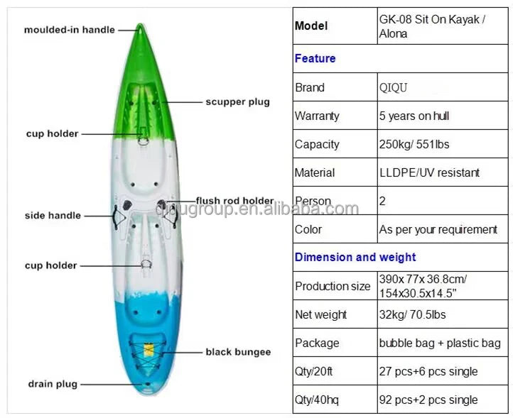 Top Quality LLDPE Material Water Sports 2 Person Drop Stitch Pedal Fishing Kayak