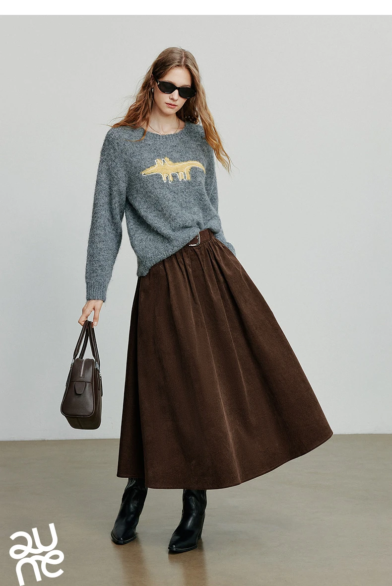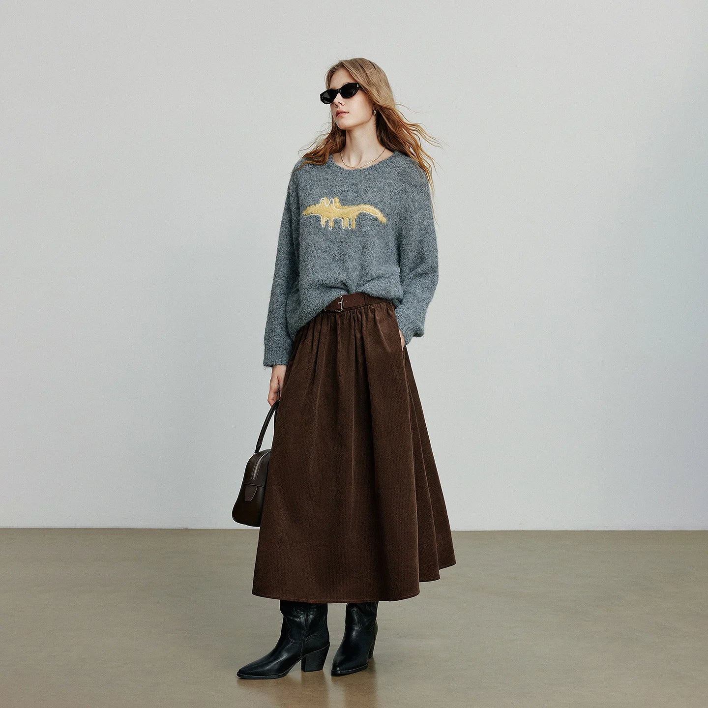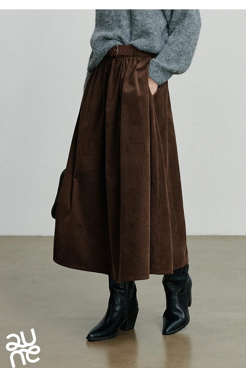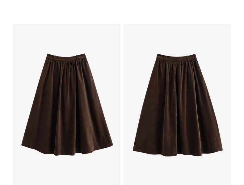 TOYOUTH Women Skirt 2025 Autumn New Corduroy Pure Cotton Ankle Length Umbrella Skirt