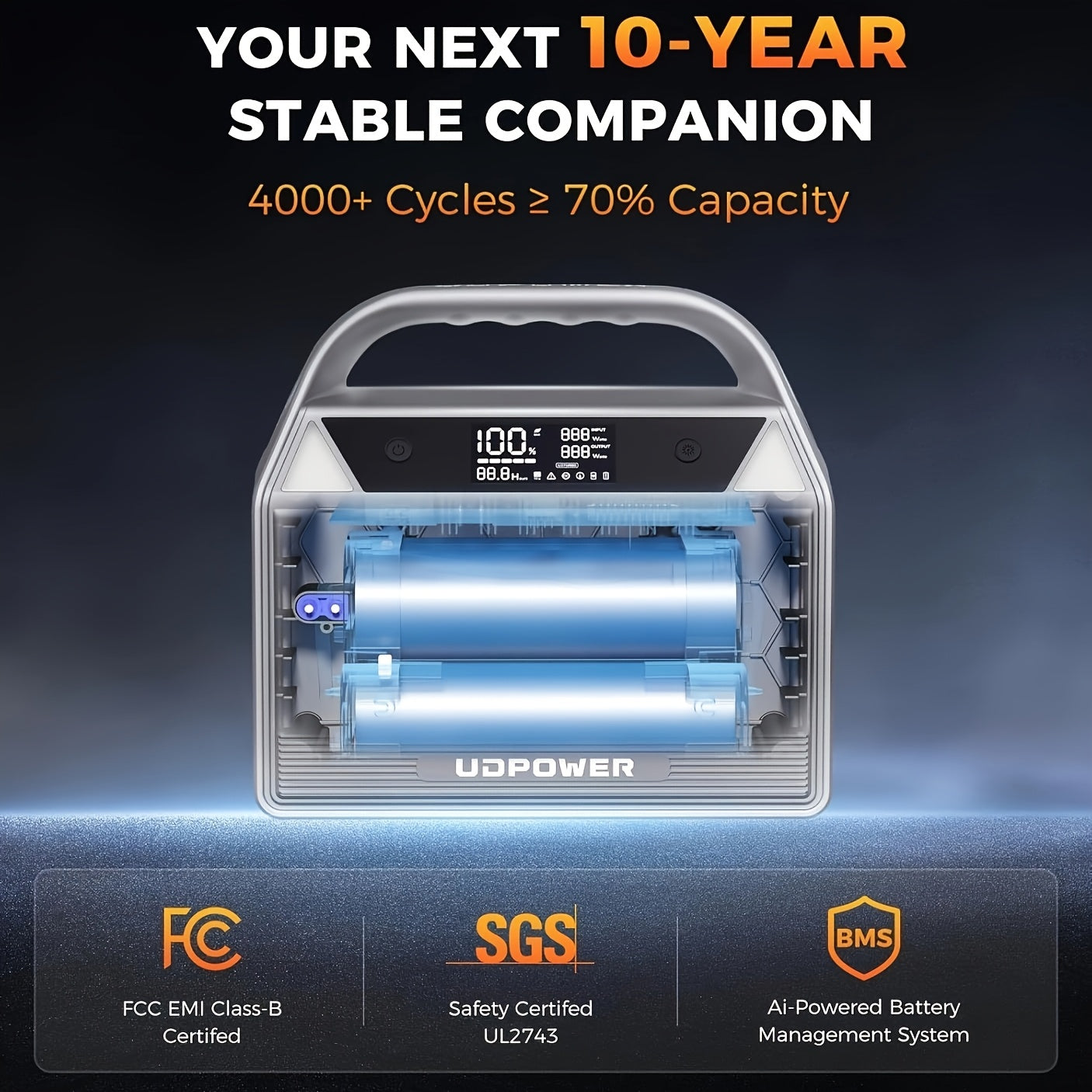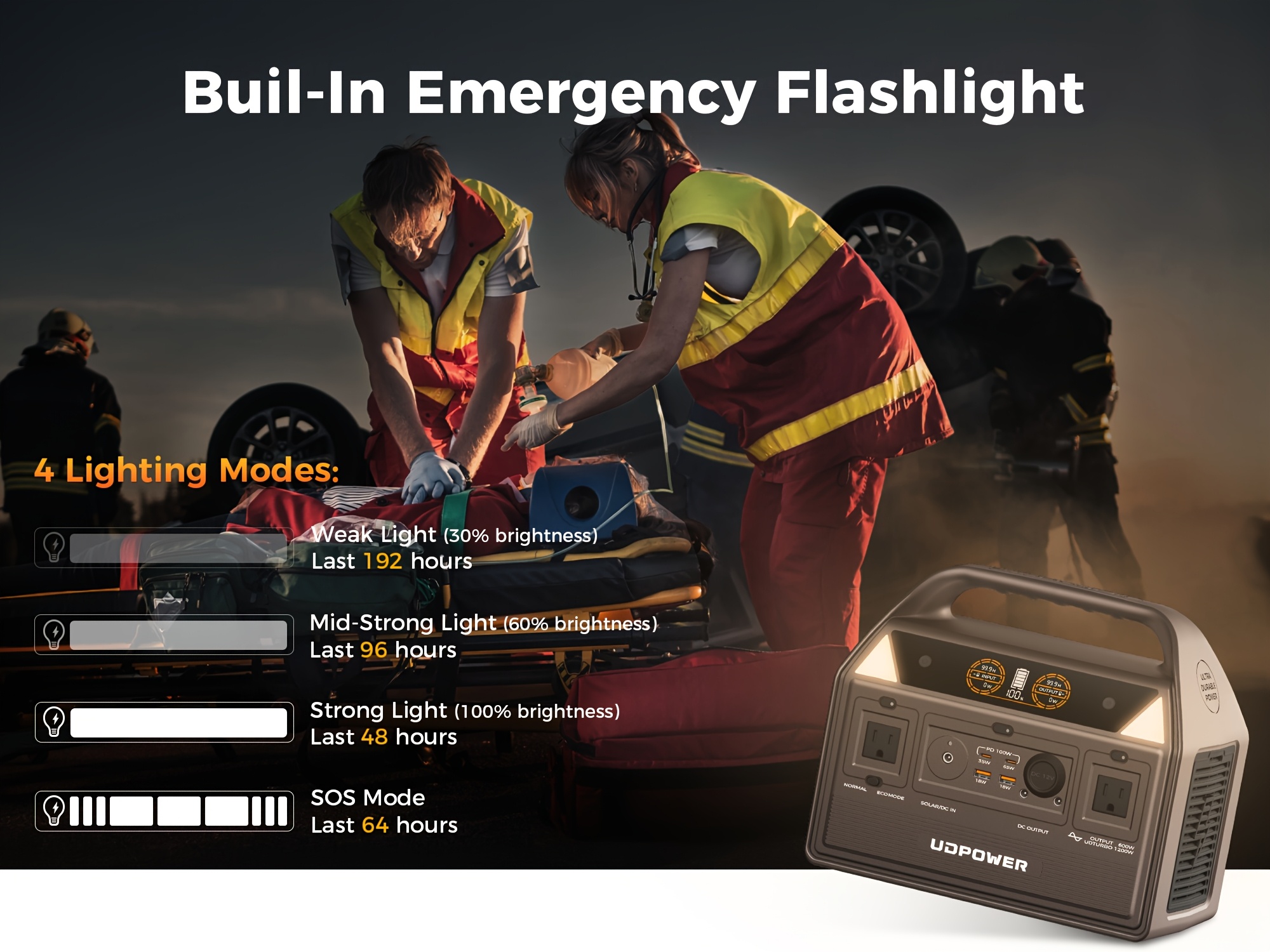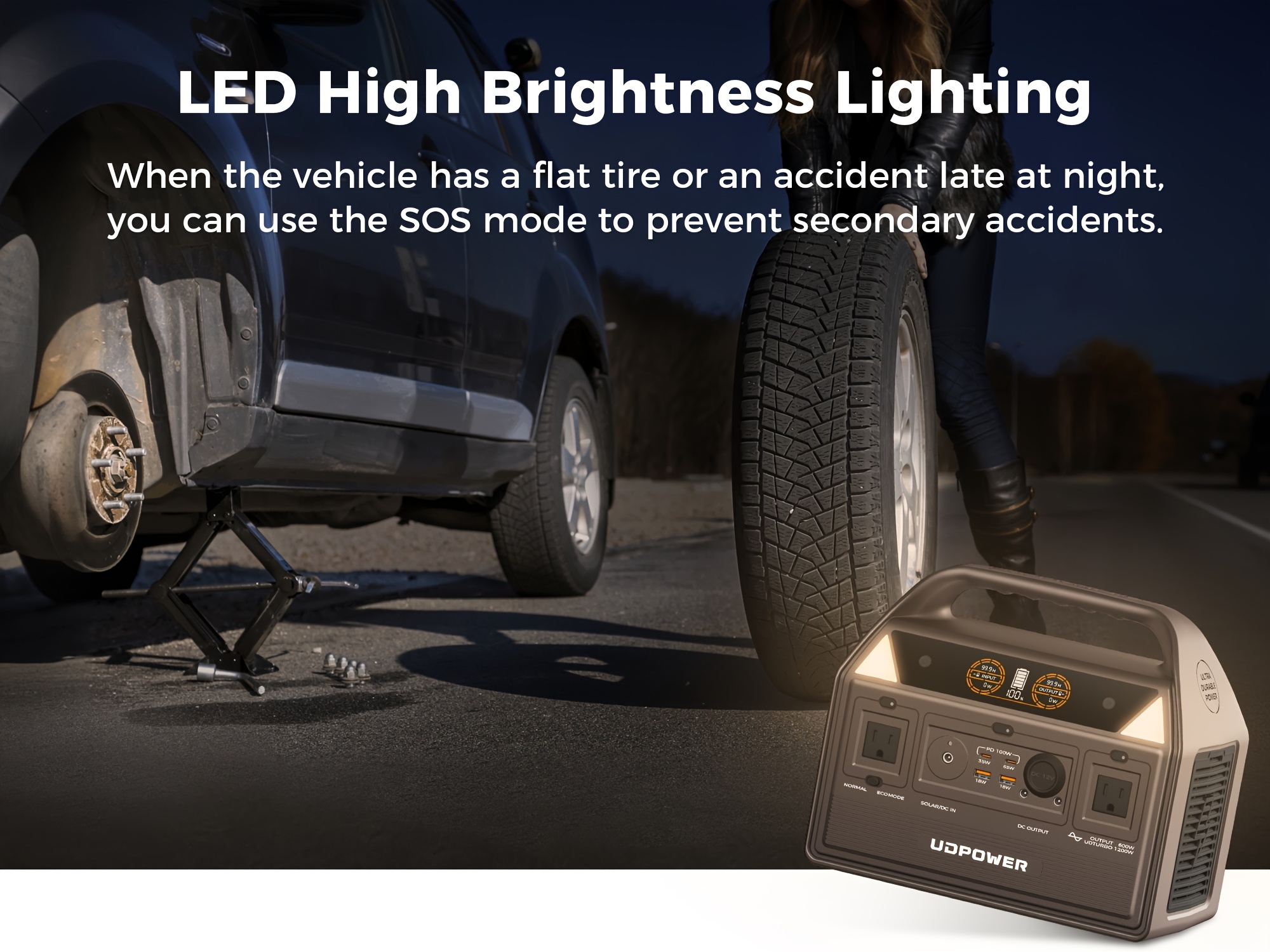UDPOWER Portable Solar Generator - 1200W, 800W, 400W Options, AC Outlet, 2 DC & 3 USB Ports, Backup Battery for Outdoor Trips, Camping & Emergency, Outdoor Power Station | Modern Power Station | Durable Power Source, Portable