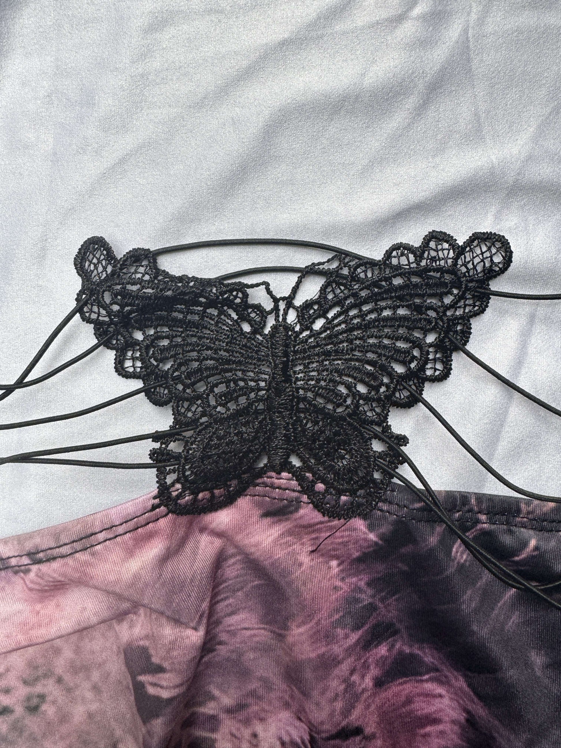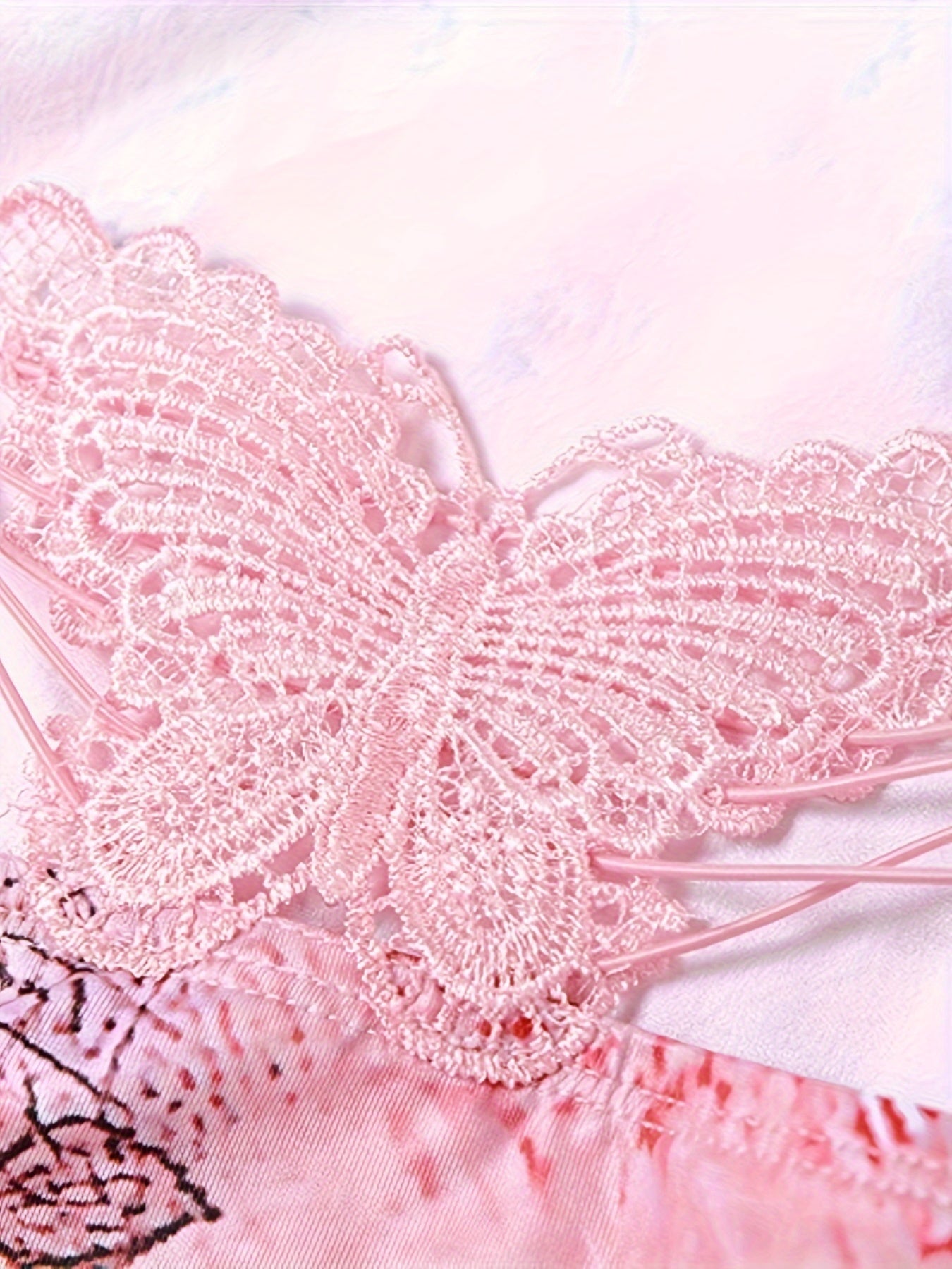 Vibrant Floral Print Mesh Babydoll Dress - Flowy Slip Style with Breathable Fabric, Delicate Butterfly Pattern, Backless Design, and Sultry Appeal - Exclusively for Women, Lingerie and Underwear Collection, Perfect for Everyd