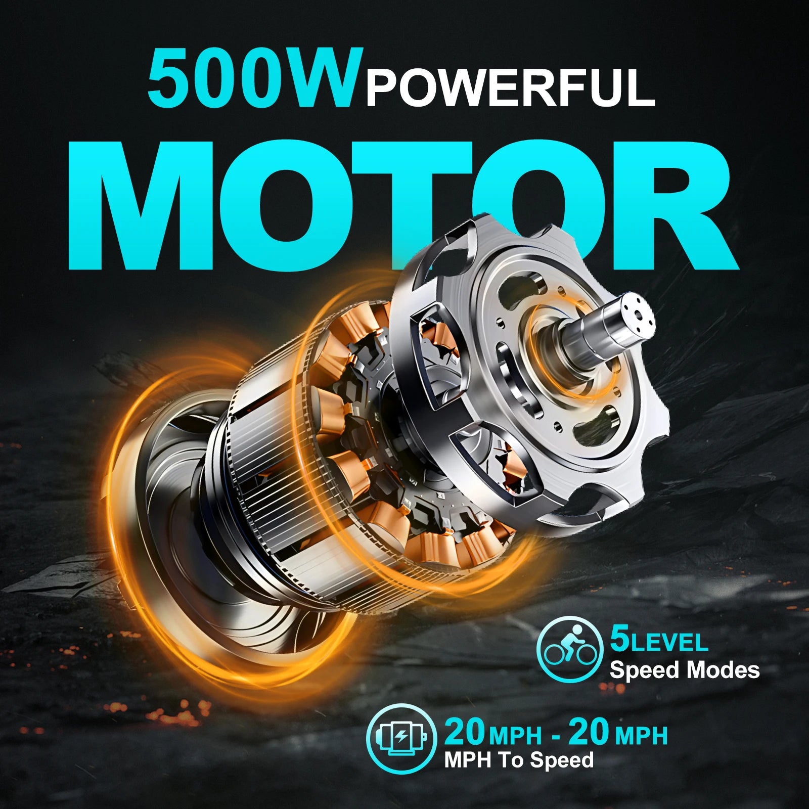 * Motor: 350W rated (500W peak) spoke wheel motor, delivering reliable power for daily commuting.