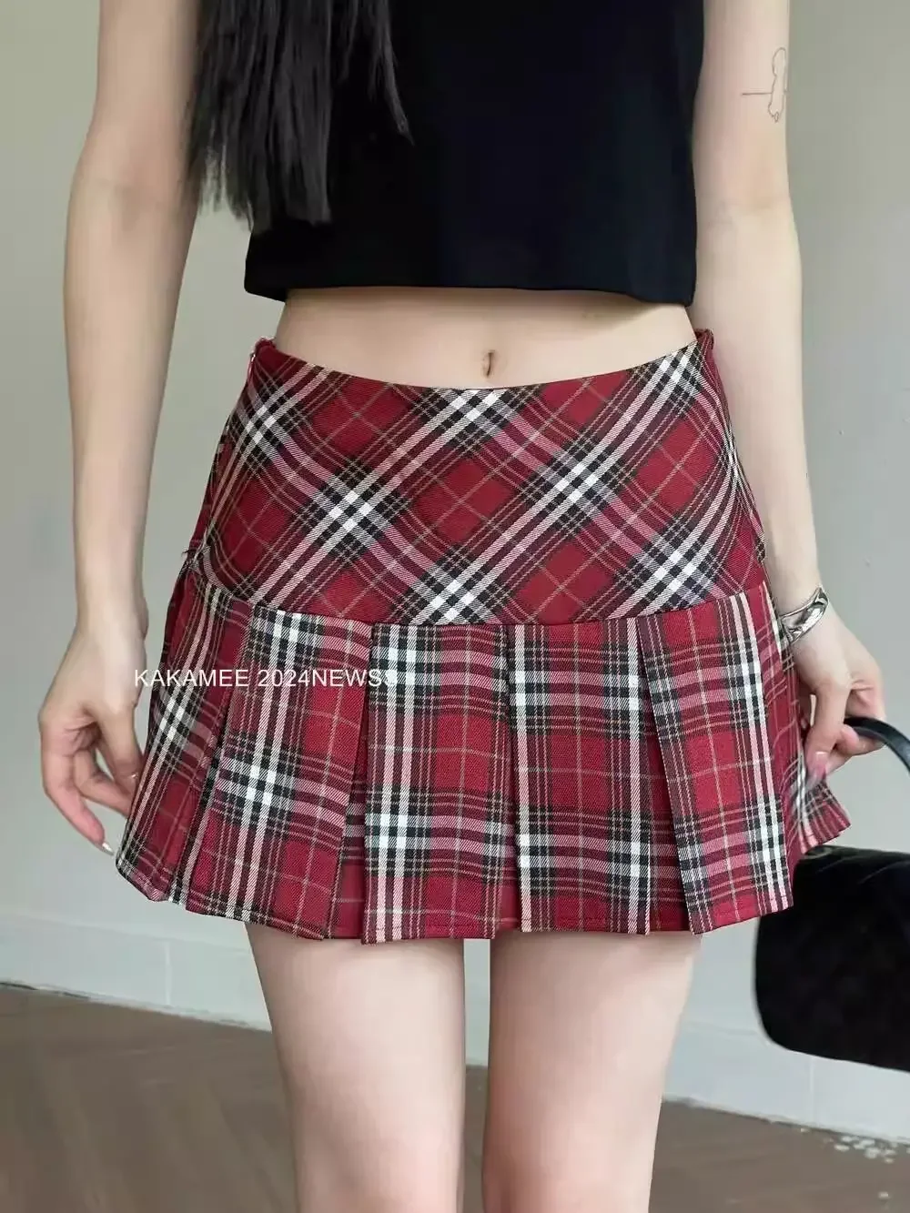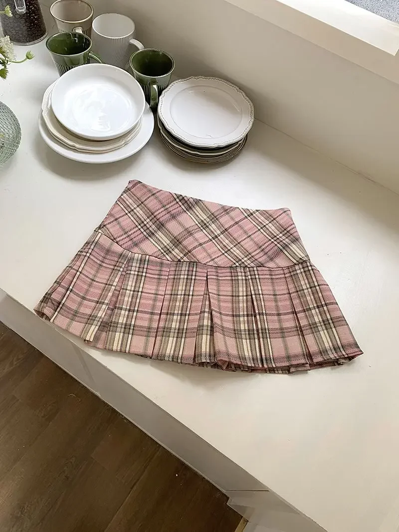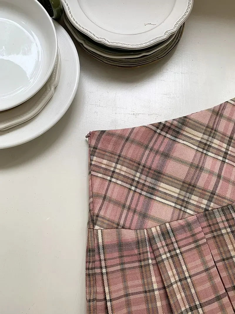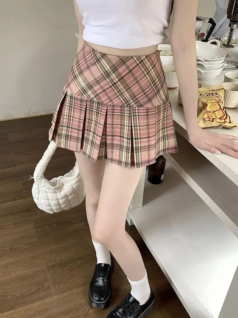 Women's High Waist Slim College Style A-shaped Anti-exposure Plaid Pleated Jk Skirt