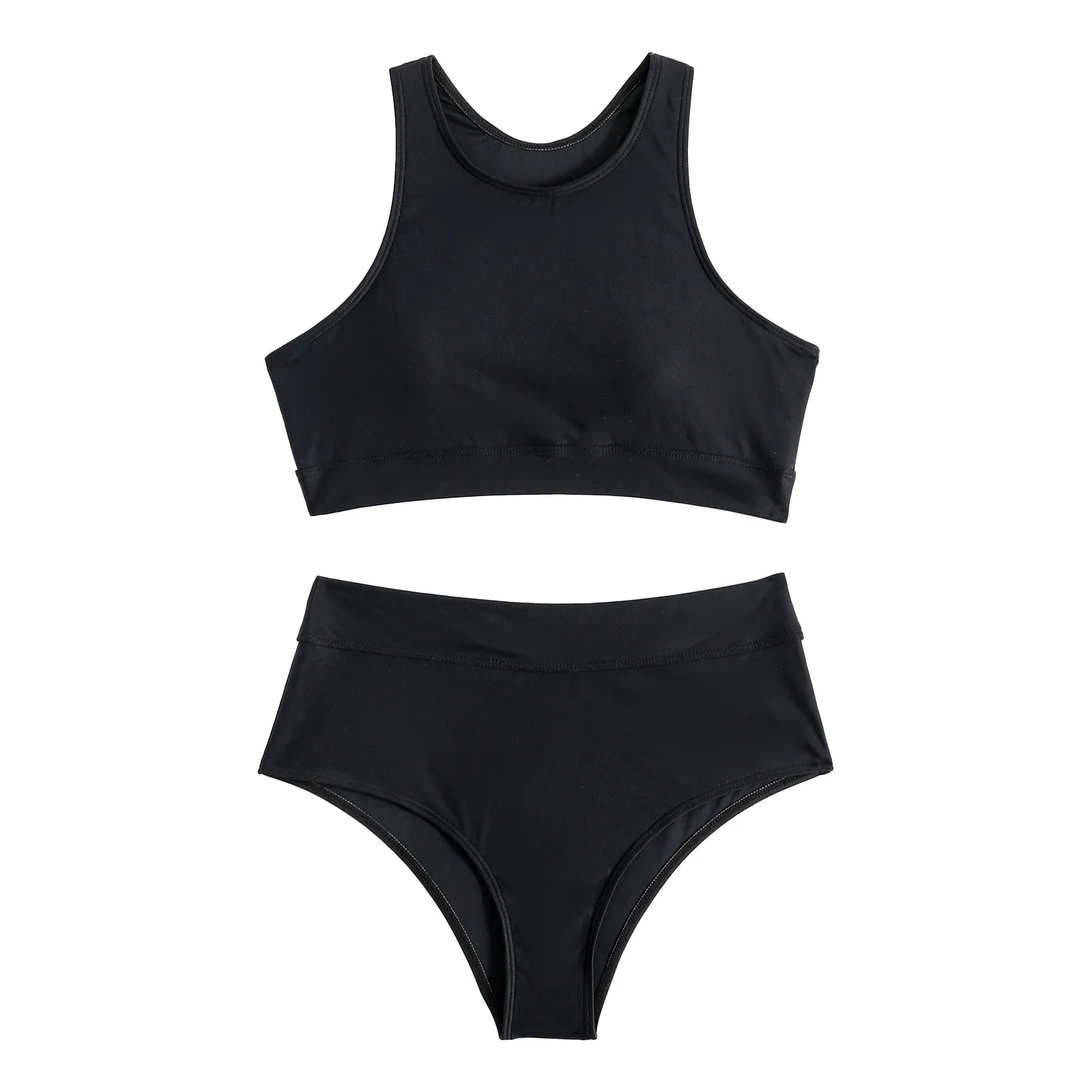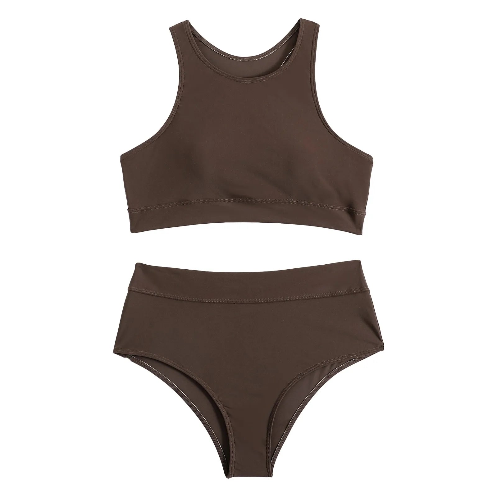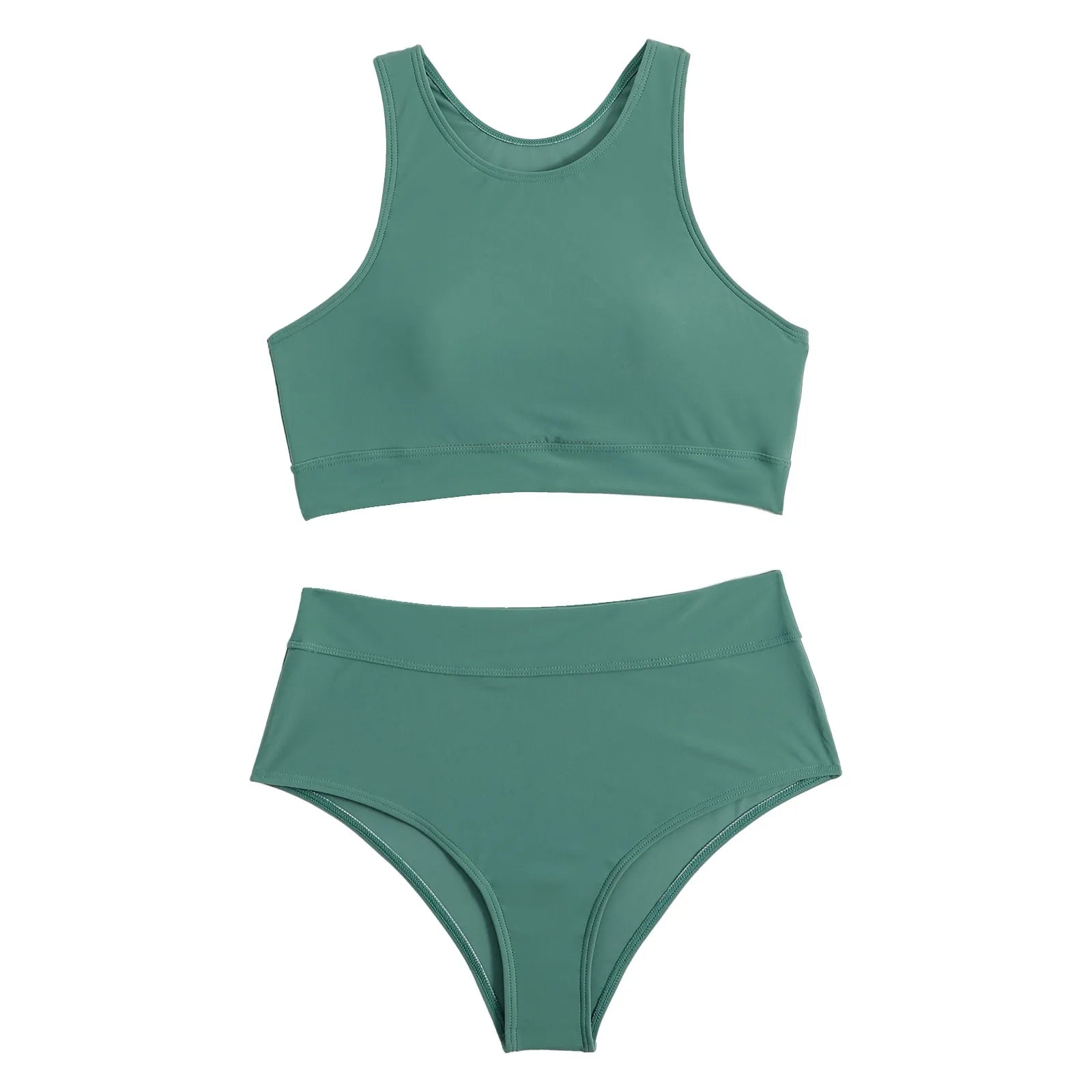 Women'S Solid Color Tank Top Swimsuit Ladies Split High Waist Swimsuit Two-Piece Set Traje De BañO Mujer Biquinis Feminino