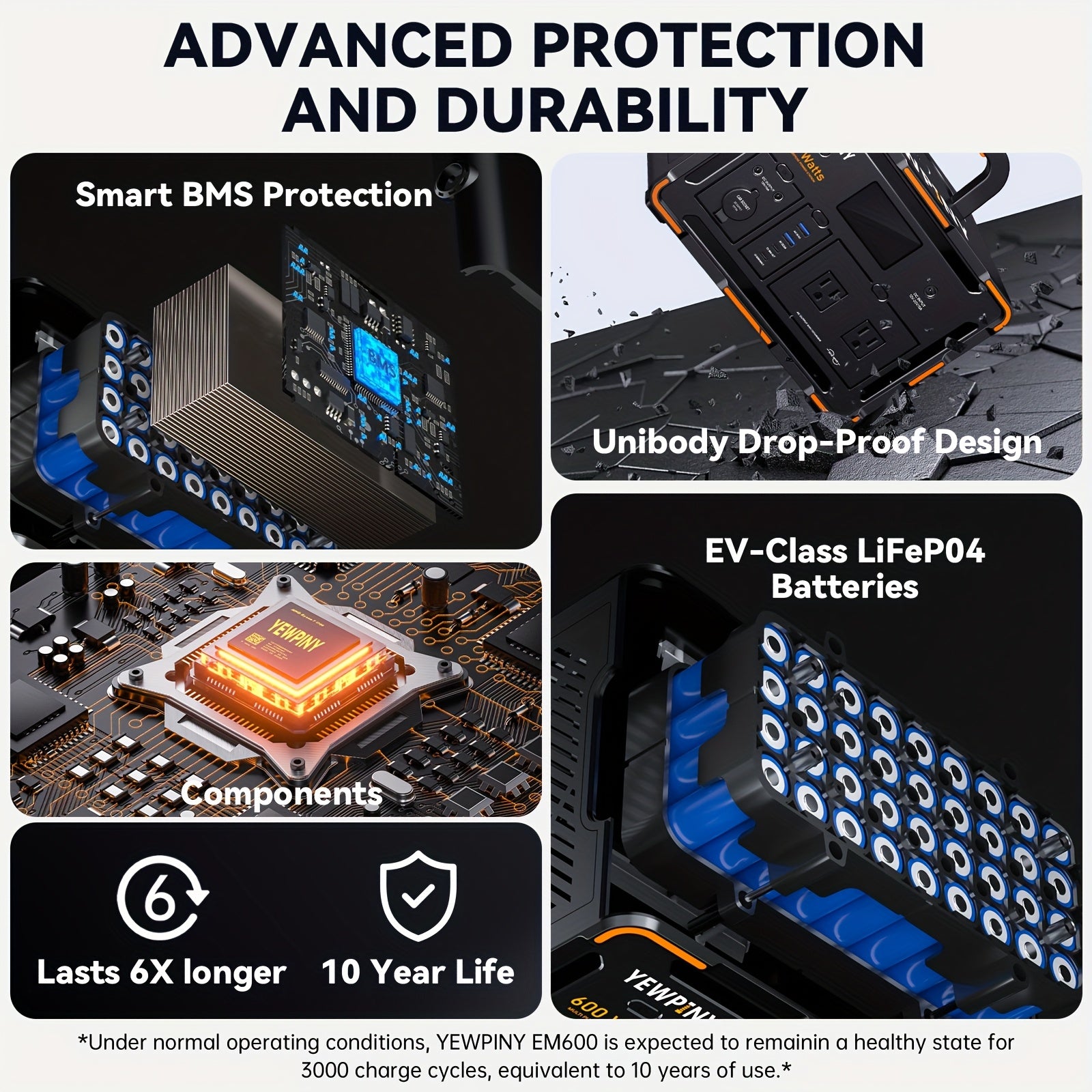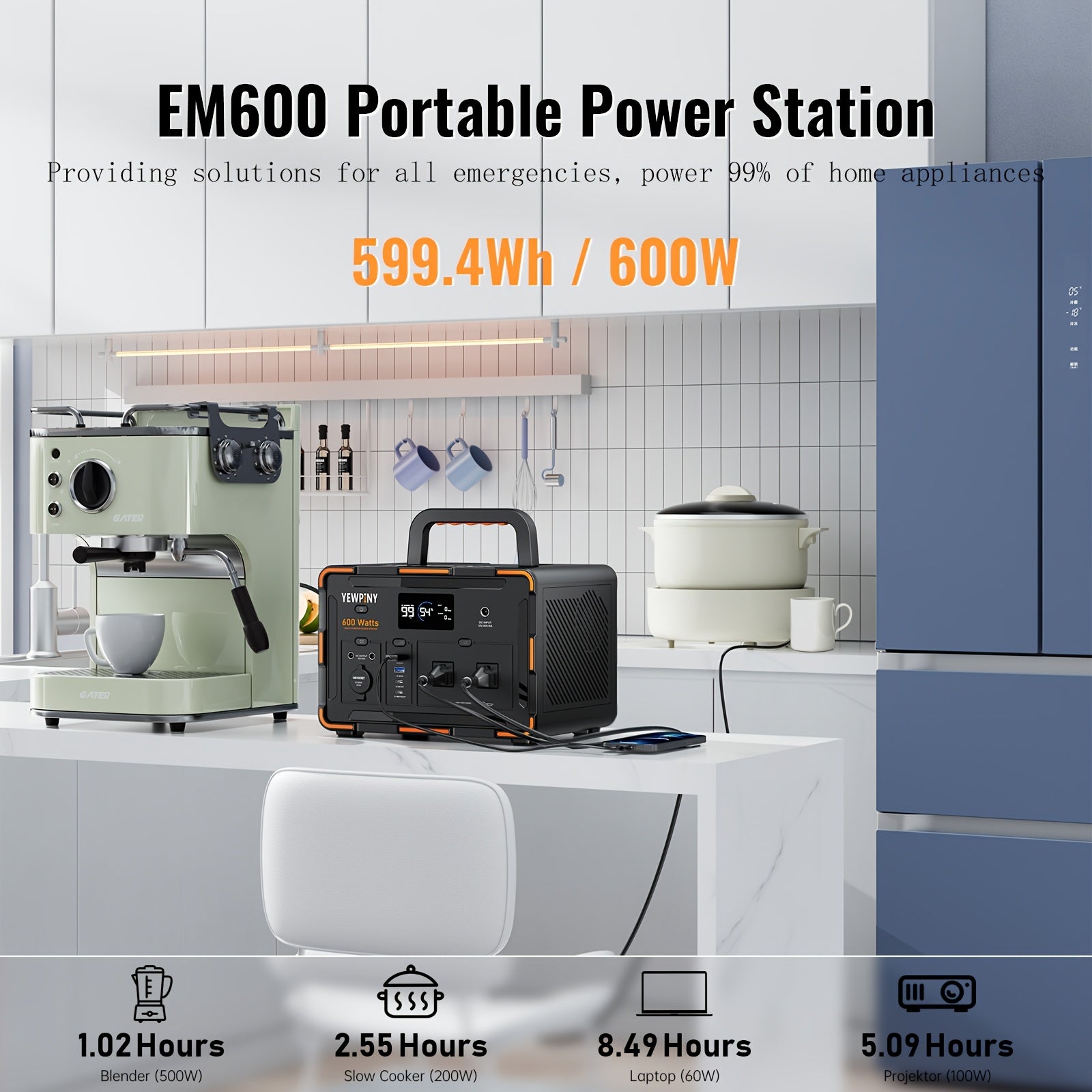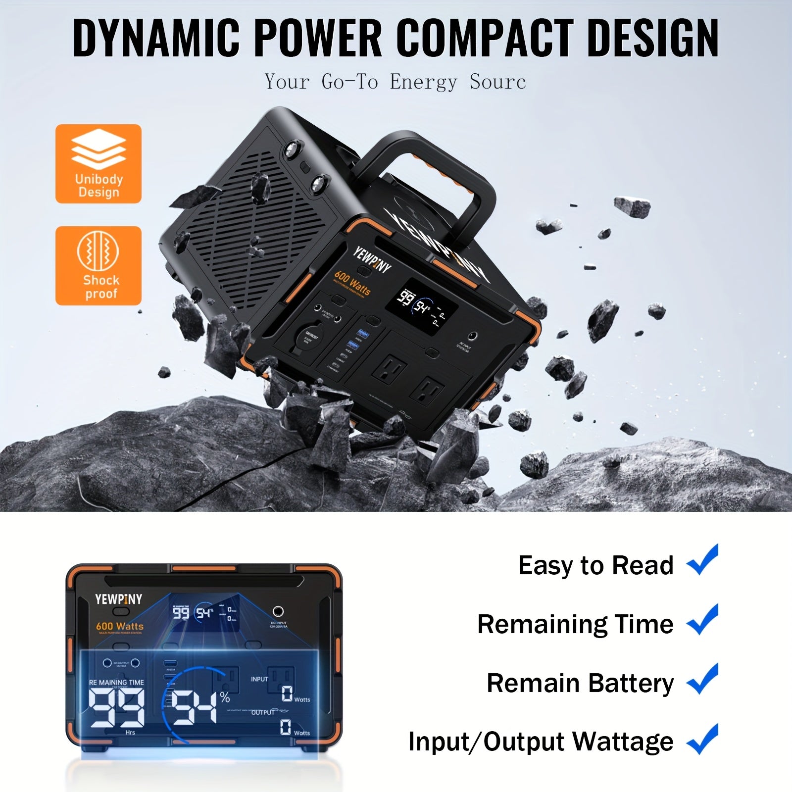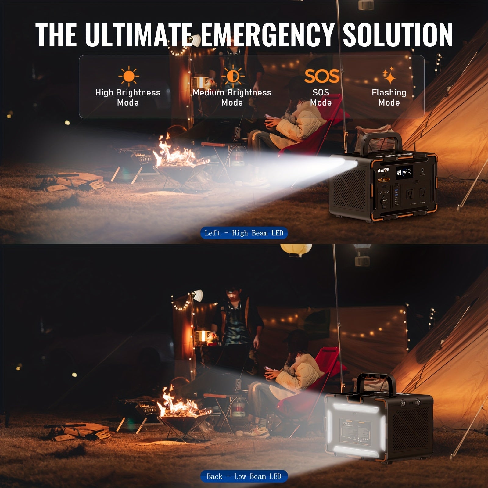 YEWPINY 600W Portable Power Station, 600W Fast Charging, 599.4Wh Lithium Battery Solar Generator AC Power Socket, DC Port, LED Lighting, PD And USB, A Total Of 9 Output Ports, Suitable for Home, Outdoor Travel, Camping And Po